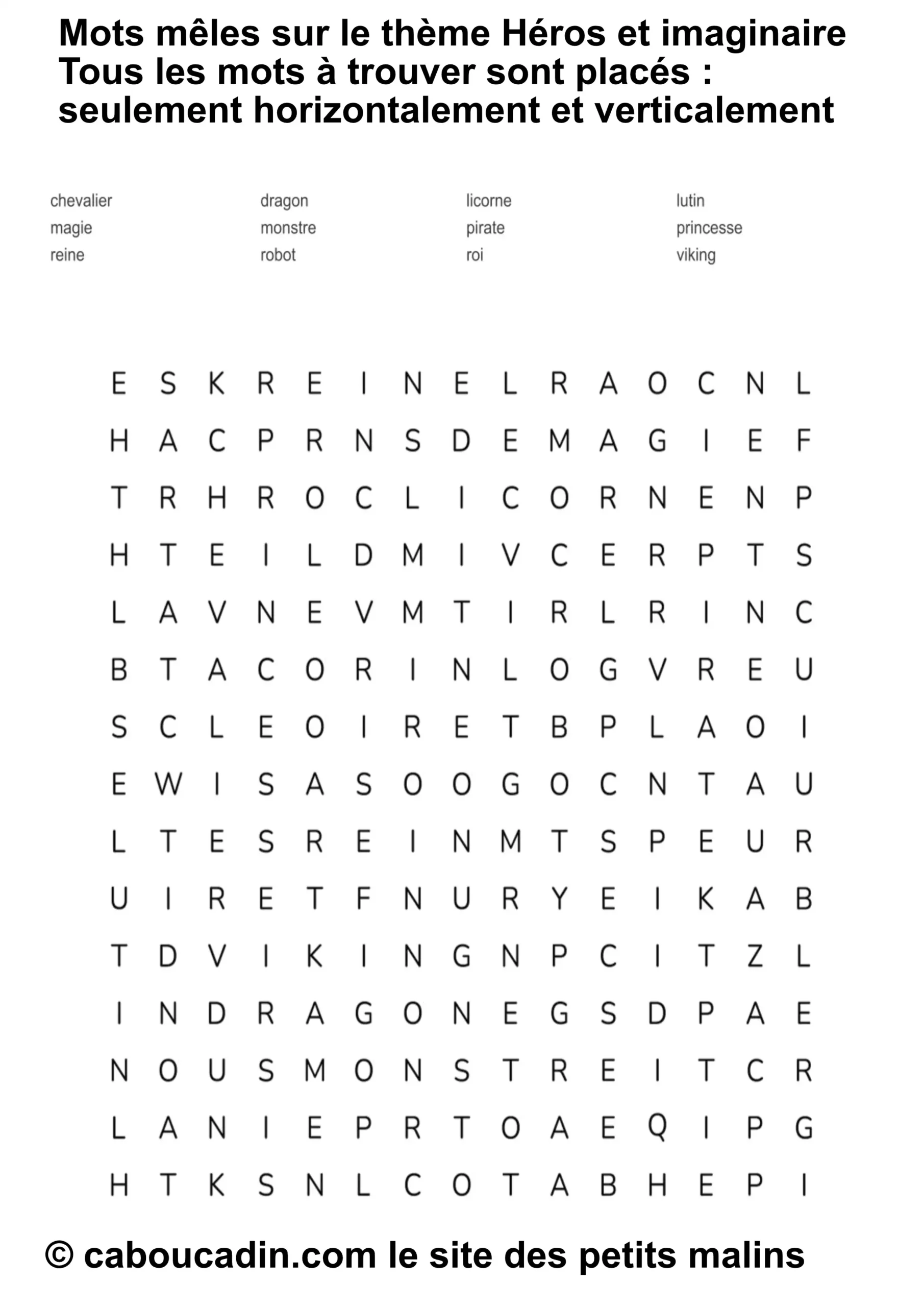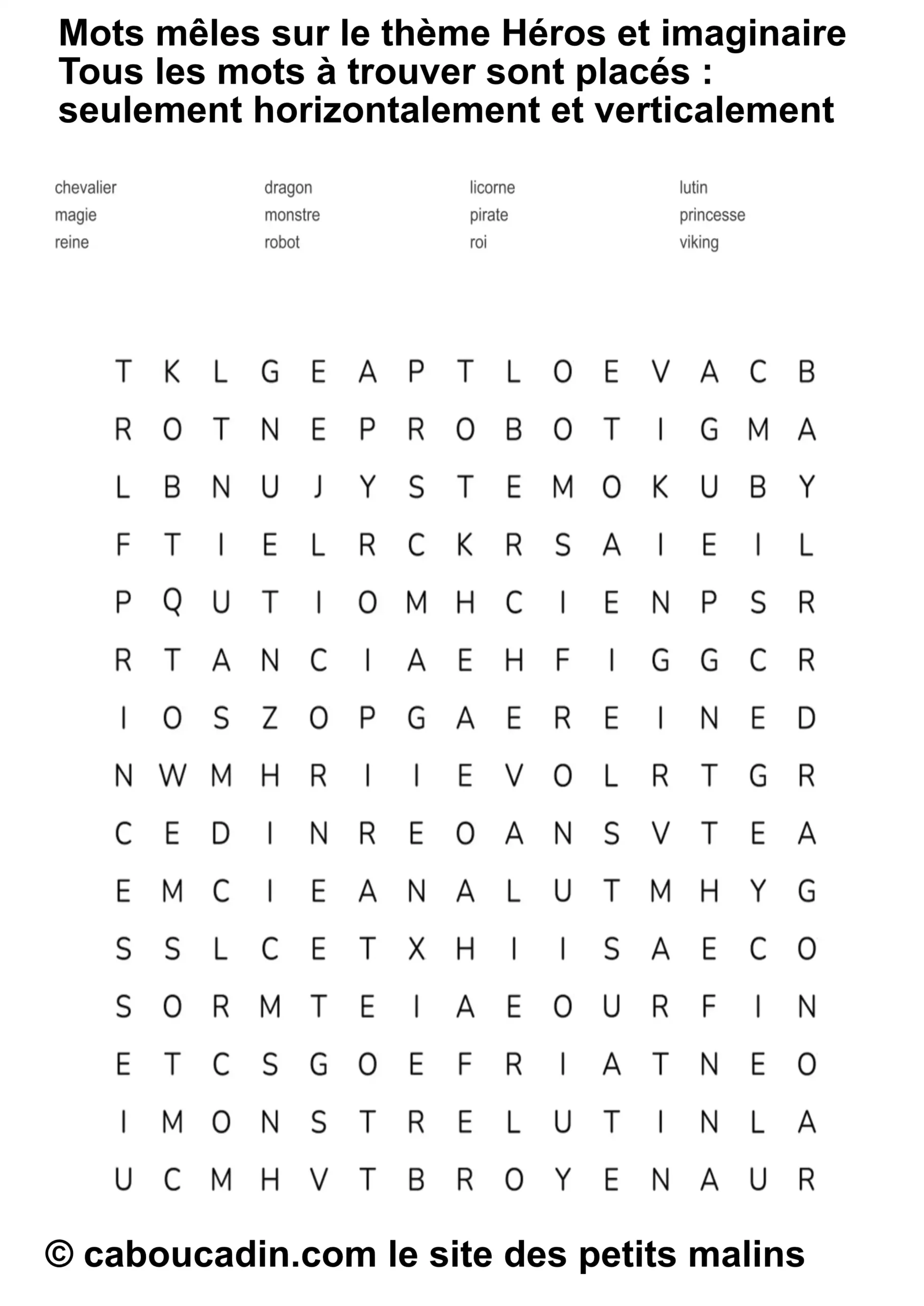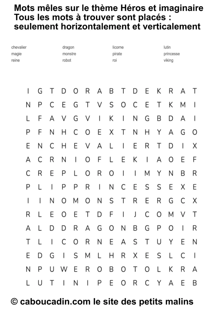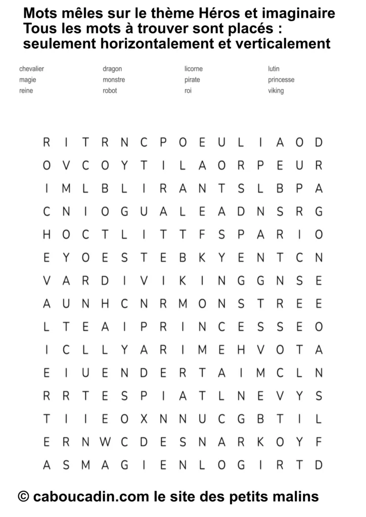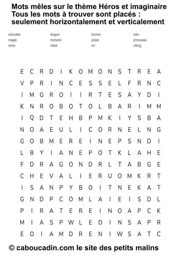 Hé toi… oui, toi, petit aventurier curieux ! 10 grilles de mots mêlés sur le thème des héros