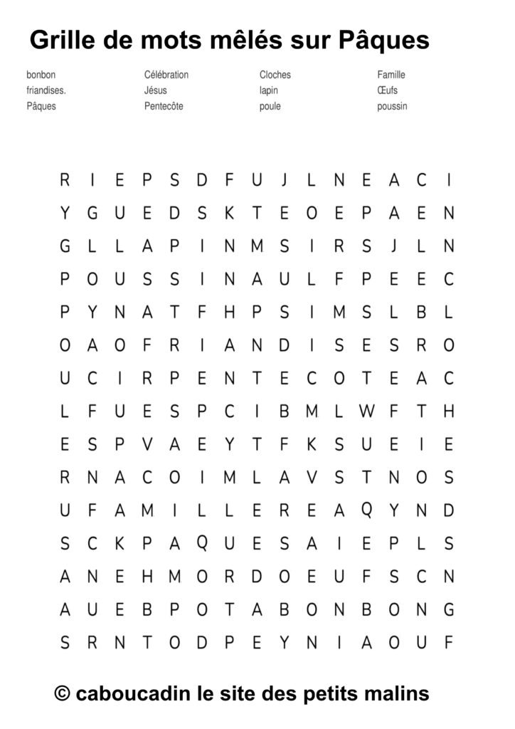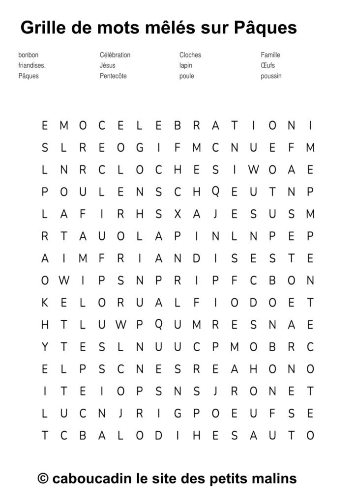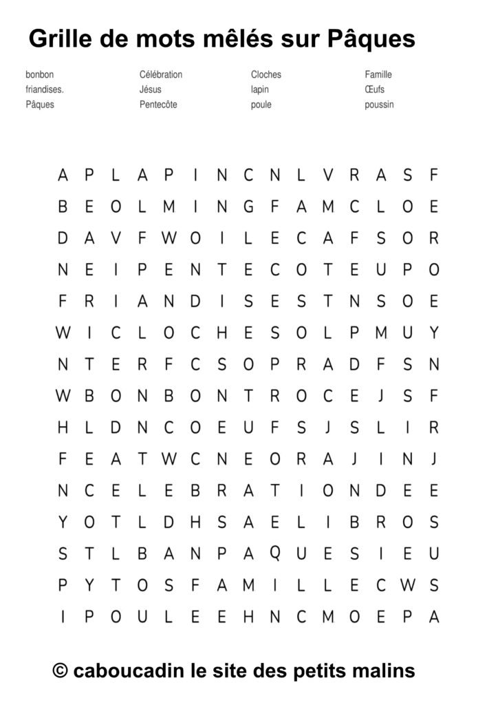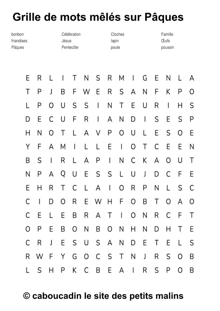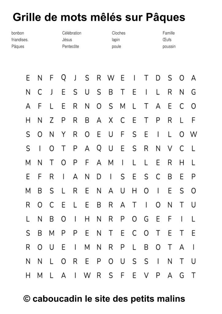 🐣 15 grilles de mots mêlés sur le thème de Pâques : apprendre en s’amusant ! 🎉 Pâques arrive à grands pas, et pour fêter ça, on te propose une super activité : des grilles de mots mêlés sur le thème de Pâques ! Si tu aimes chercher, découvrir, et surtout t’amuser, ces jeux sont faits pour toi. Et bonne nouvelle : ces mots mêlés ne sont pas seulement rigolos, ils t’aident aussi à apprendre plein de choses sans même t’en rendre compte.