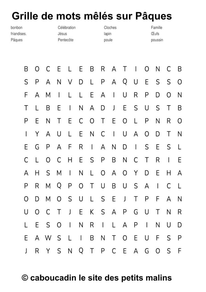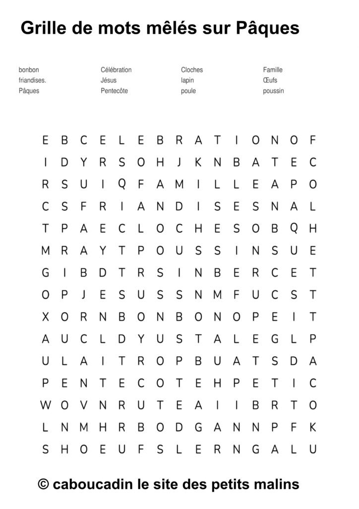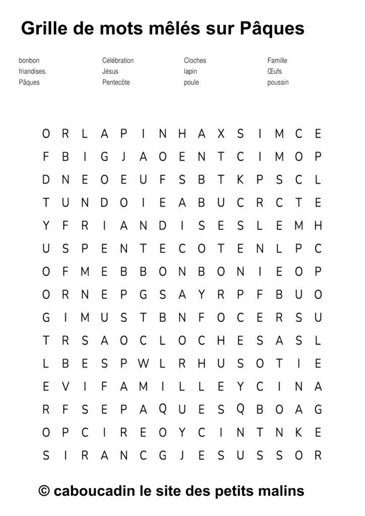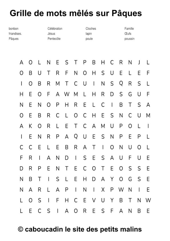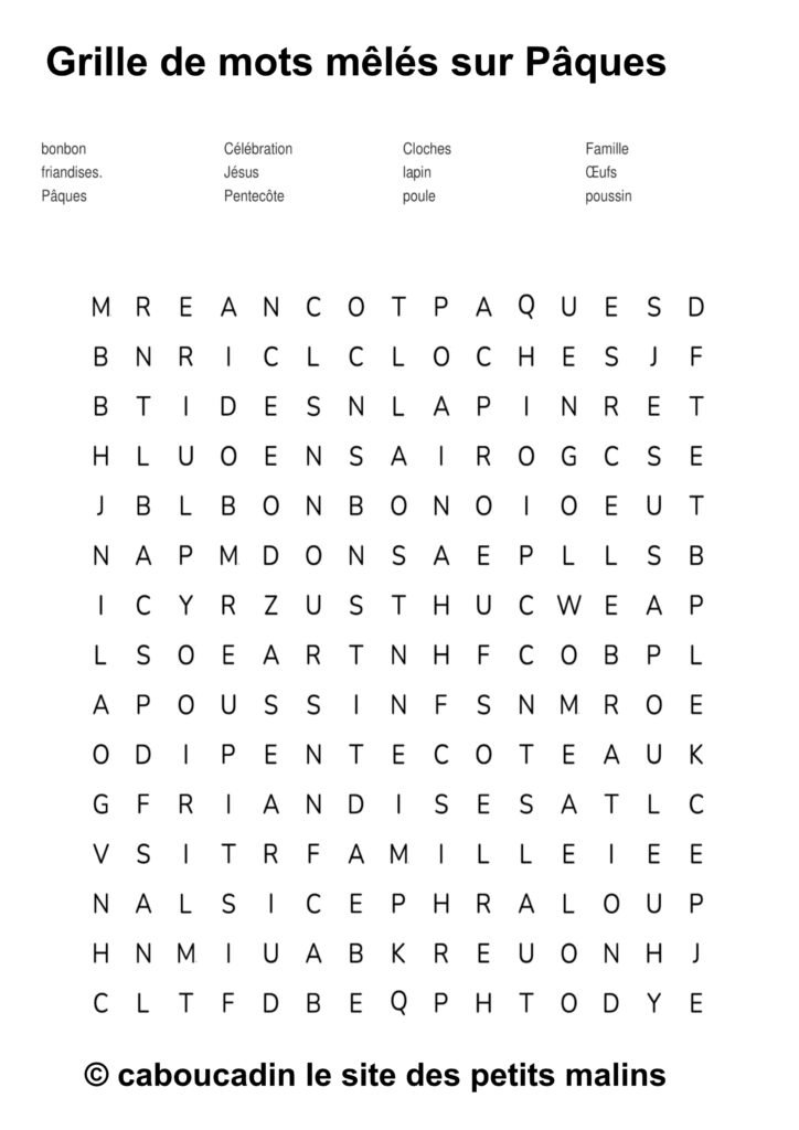 🐣 15 grilles de mots mêlés sur le thème de Pâques : apprendre en s’amusant ! 🎉 Pâques arrive à grands pas, et pour fêter ça, on te propose une super activité : des grilles de mots mêlés sur le thème de Pâques ! Si tu aimes chercher, découvrir, et surtout t’amuser, ces jeux sont faits pour toi. Et bonne nouvelle : ces mots mêlés ne sont pas seulement rigolos, ils t’aident aussi à apprendre plein de choses sans même t’en rendre compte.
