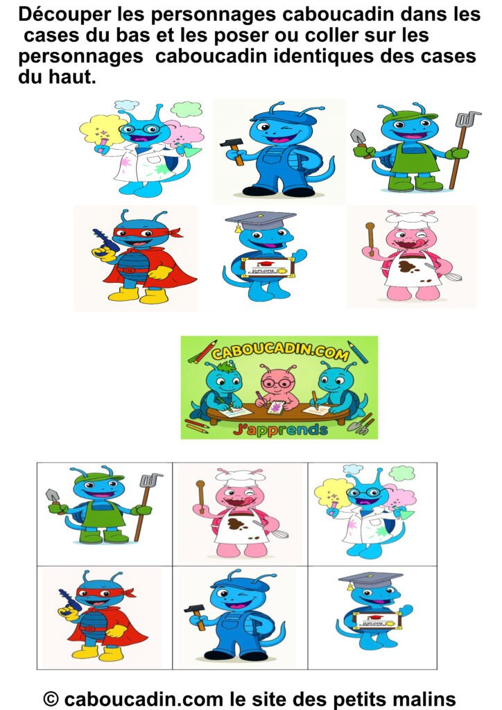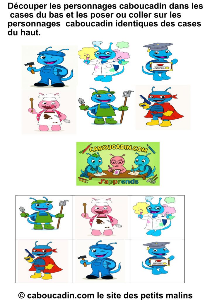 Aujourd’hui, on te propose une activitĂ© qui va te plaire : une fiche pleine de couleurs et de personnages rigolos Ă  dĂ©couvrir. 10 fiches d’observation avec les personnages caboucadin . Tu vas dĂ©couper, coller et t’amuser tout en apprenant ! Oui, oui, c’est possible. Cette fiche a Ă©tĂ© créée pour les enfants de maternelle comme toi, qui aiment jouer et bricoler avec leurs petites mains.