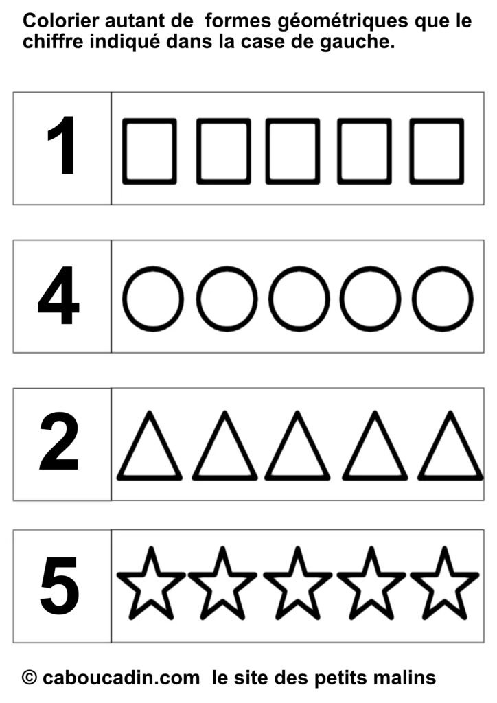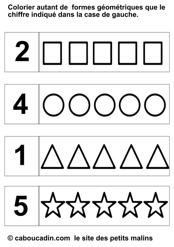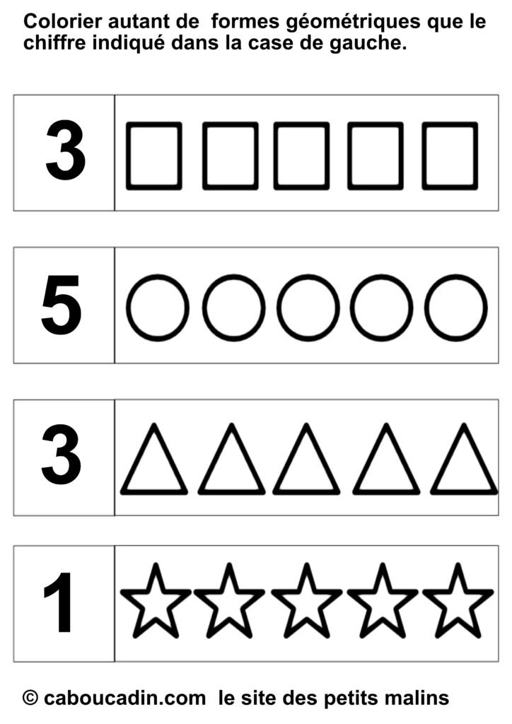 D’abord, cette fiche va t’aider à devenir un pro du comptage ! Oui, oui, tu vas apprendre à compter, à reconnaître les chiffres et à les relier à la quantité qu’ils représentent. Par exemple, le chiffre 2, ça veut dire deux objets. Le chiffre 4, c’est quatre objets. Et comme tu dois colorier exactement le bon nombre de formes, tu vas très vite comprendre que chaque chiffre a une “famille” d’objets qui lui correspond. Tu verras, avec un peu d’entraînement, tu ne te tromperas plus jamais !