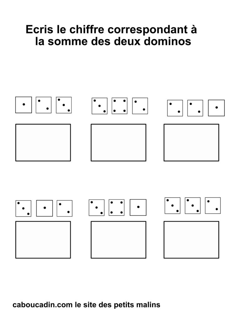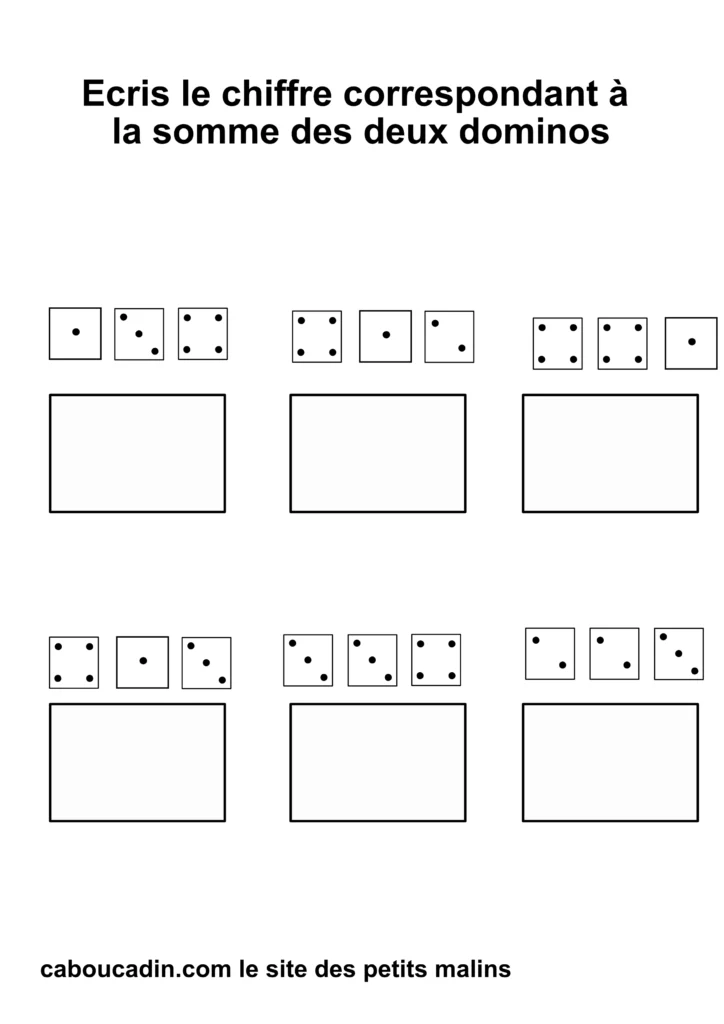 En dessous de chaque domino, il y a un petit espace secret. C’est là que vous allez écrire le nombre total de points que vous avez trouvés. C’est comme un code secret de maths !