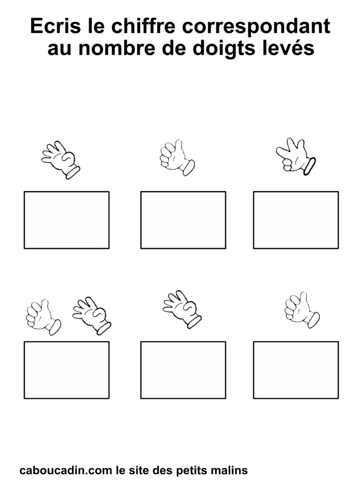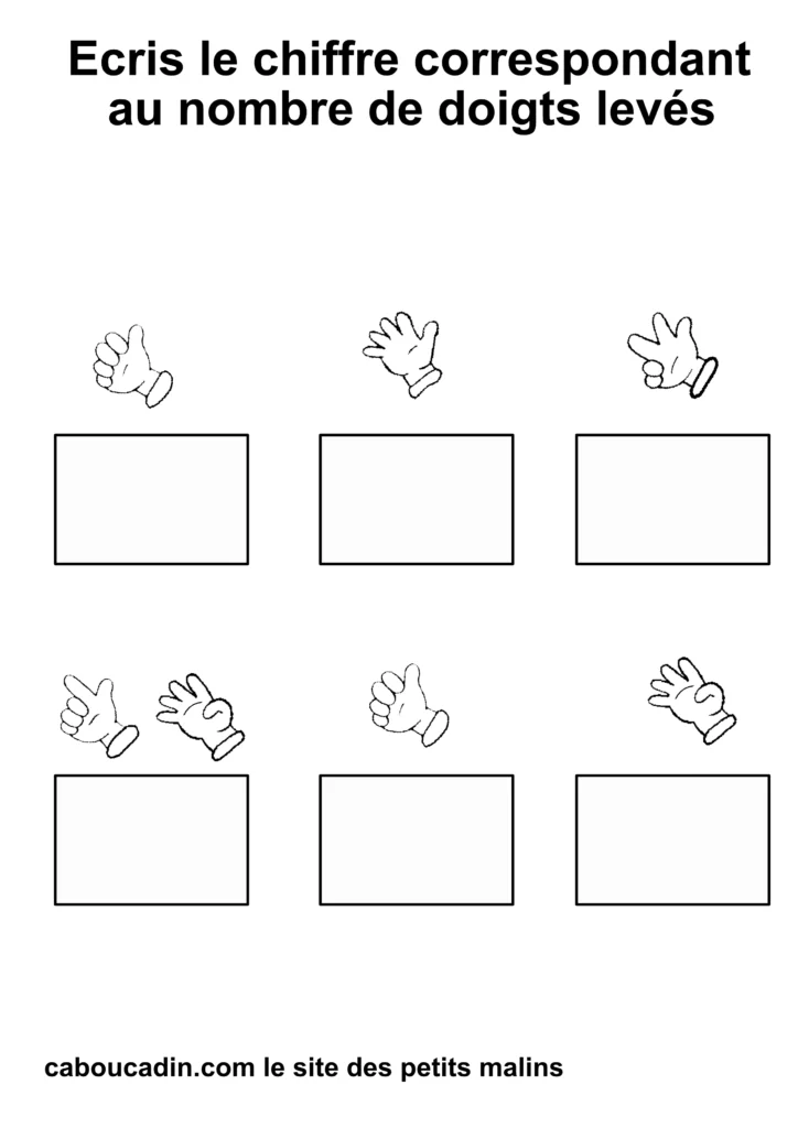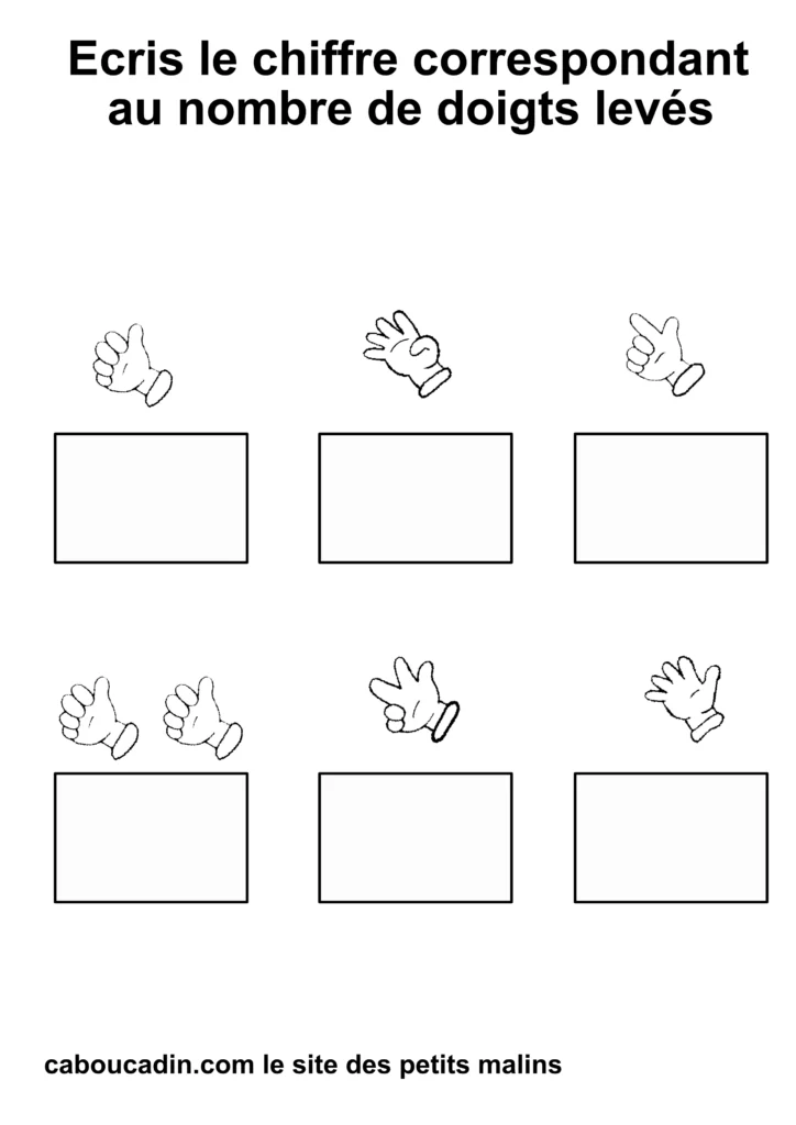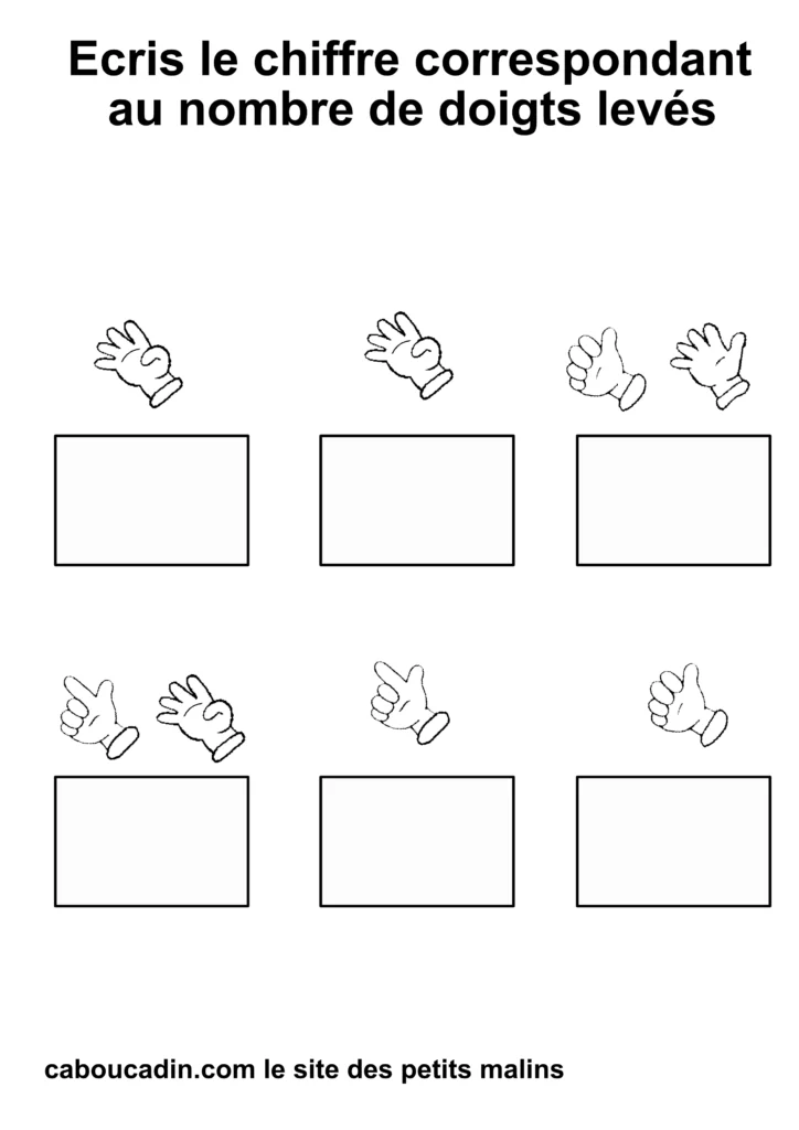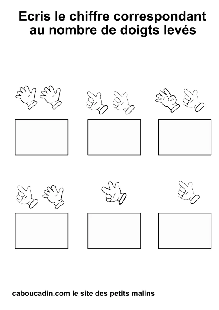 Regardez bien vos fiches imprimées : combien de doigts sont levés sur chaque main ? 1, 2, 3… ?