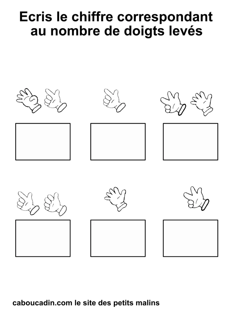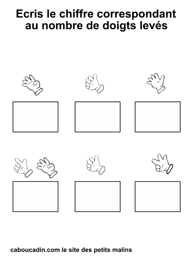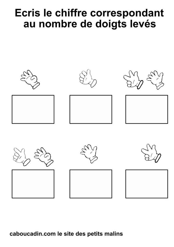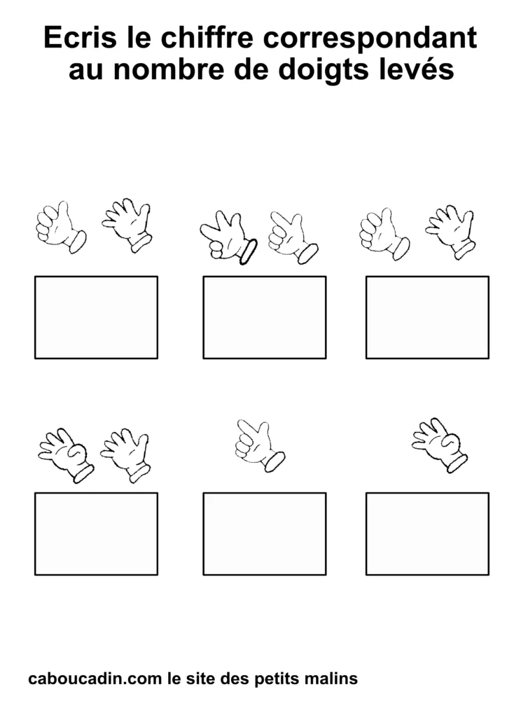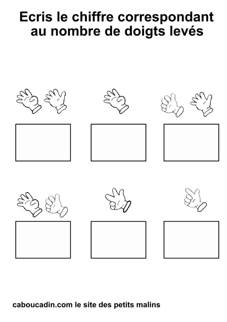 Regardez bien vos fiches imprimées : combien de doigts sont levés sur chaque main ? 1, 2, 3… ?
