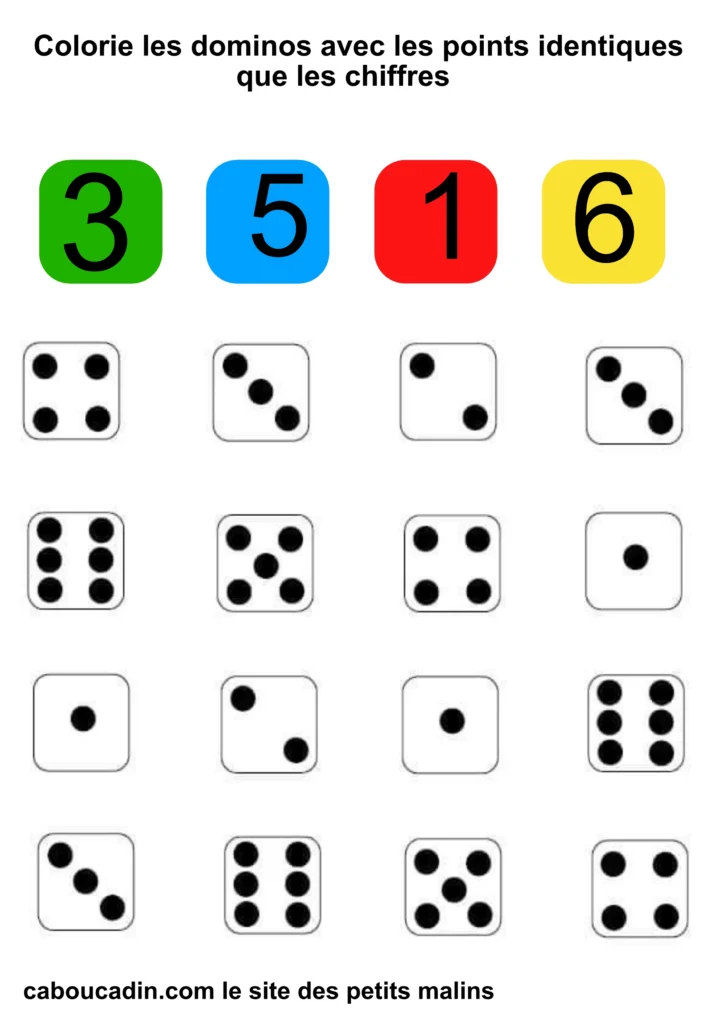 10 fiches maternelles : compter et colorier les dominos. Fiches Graphisme Maternelle : Deviens un Super Coloriste de Domino !