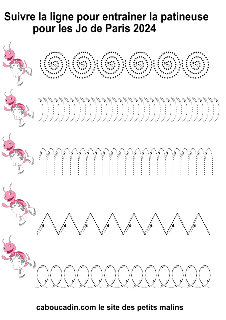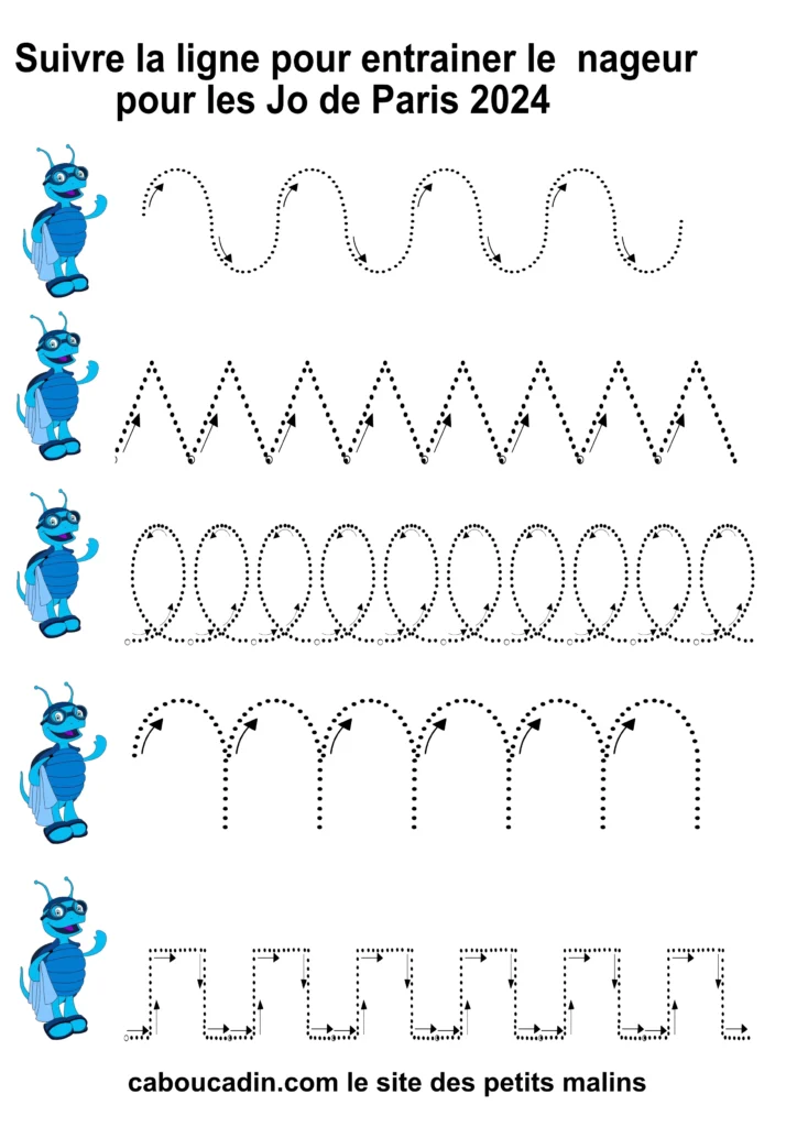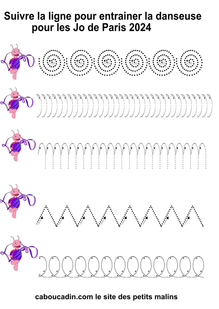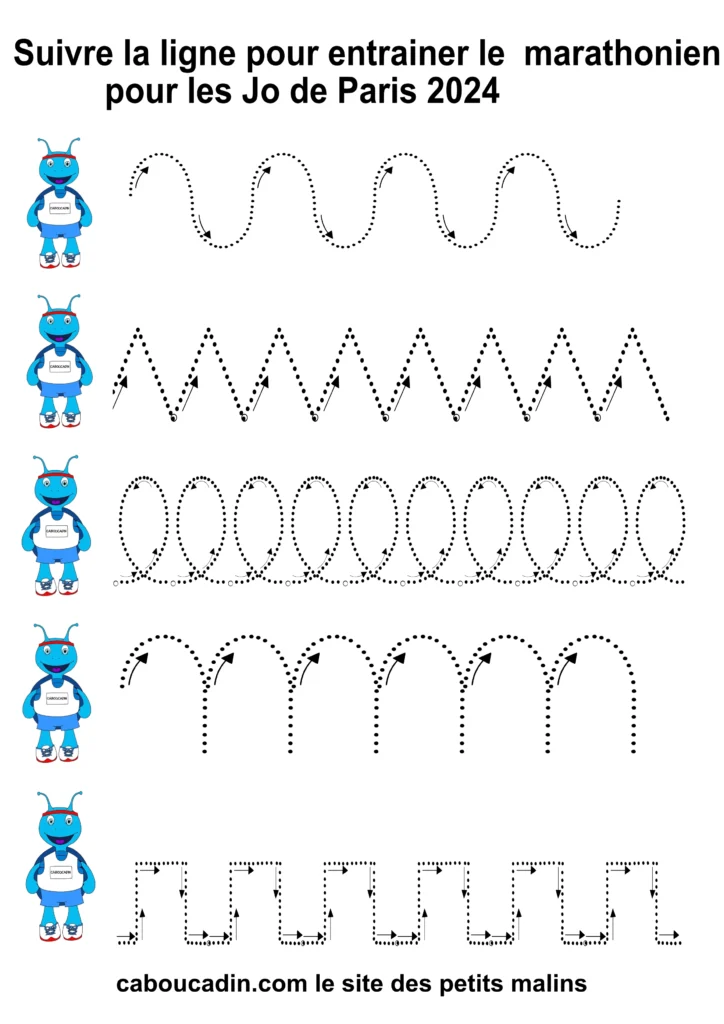 10 fiches maternelles JO Paris : Apprendre le graphisme. Des fiches maternelles Jeux Olympiques de Paris 2024 pour apprendre aux enfants le graphisme comme les ronds, les boucles, les carrés ou les créneaux. Ces fiches maternelles permettent aux enfants de maternelle de se concentrer et d’améliorer leur motricité fine. Va vite chercher tes crayons de couleurs, feutres ou stylos pour t’entrainer à réaliser des boucles, créneaux, spirales ou des ronds. Ces fiches sont gratuites et peuvent être télécharger et imprimer pour vos enfants.