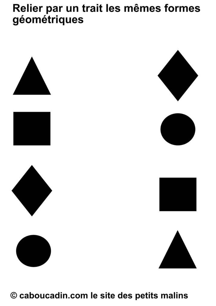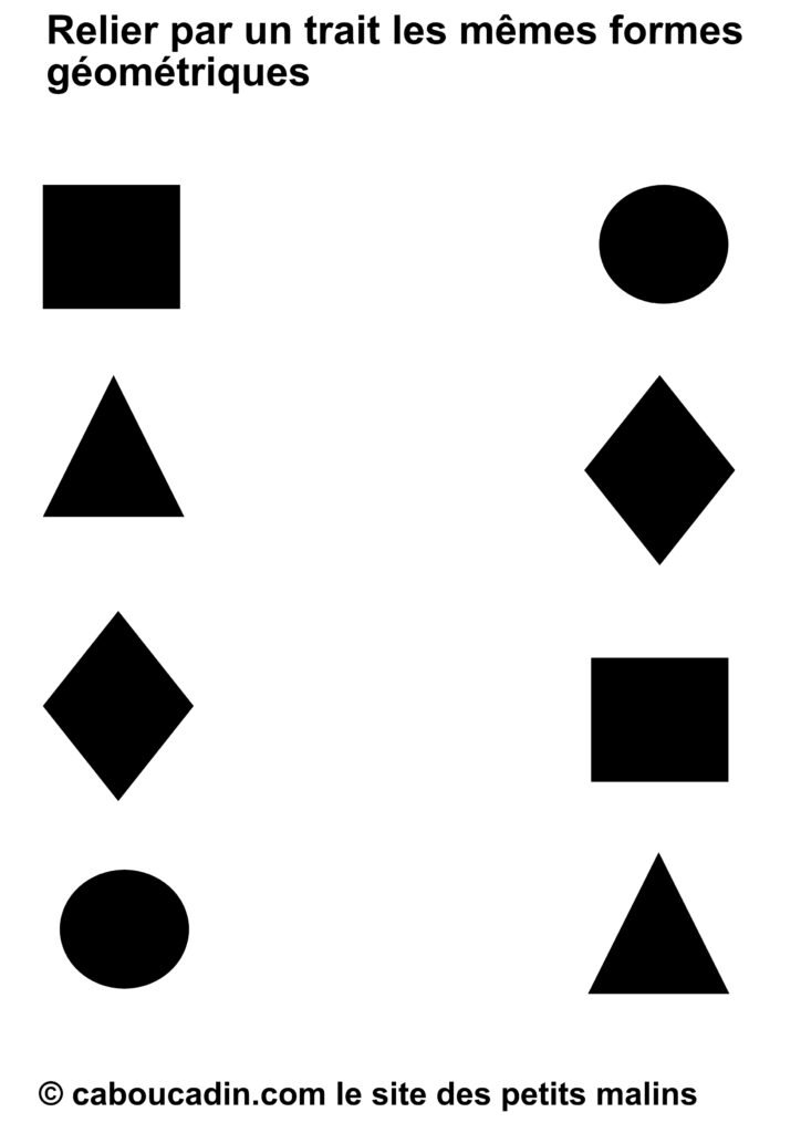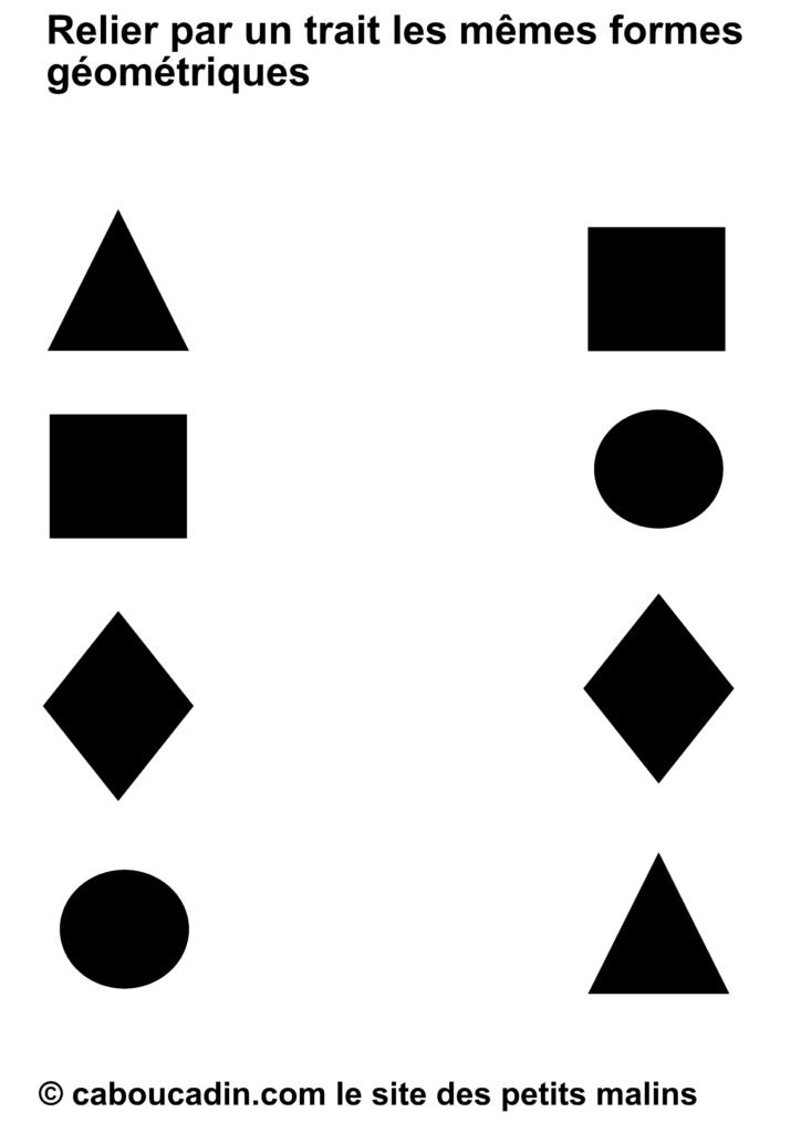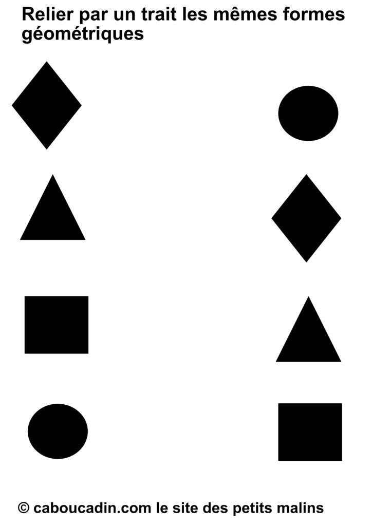 Il faut que tu regardes la forme dans la colonne de gauche, puis que tu cherches la même dans la colonne de droite, et… que tu les relies avec un trait ! ✏️