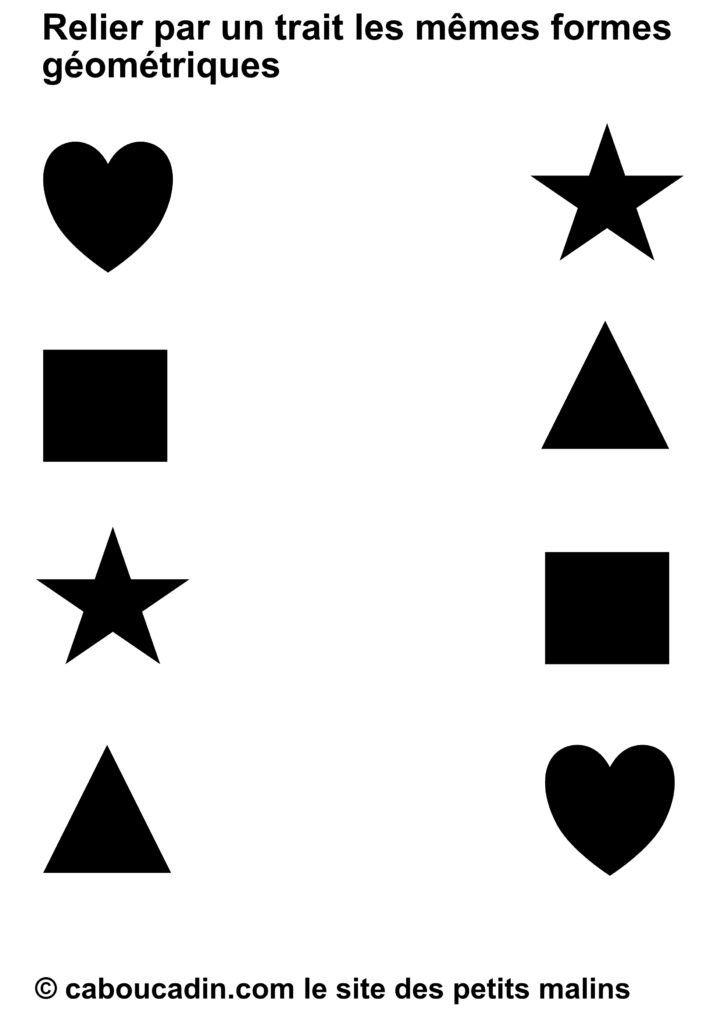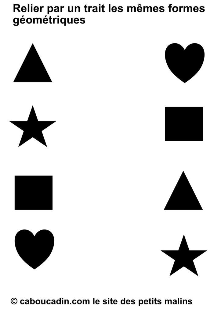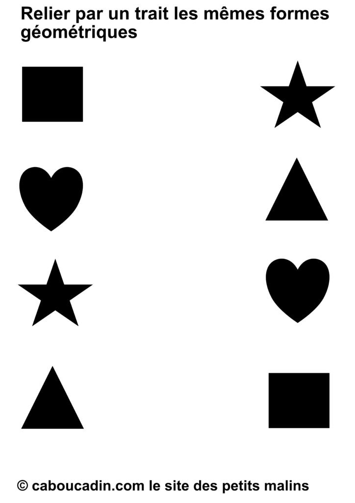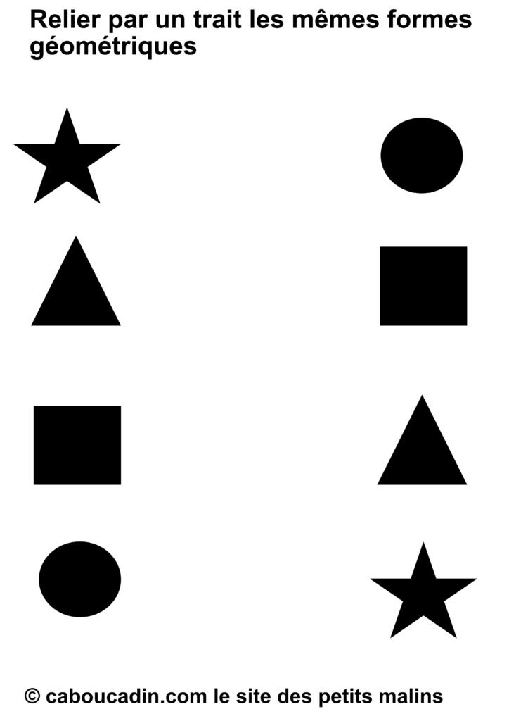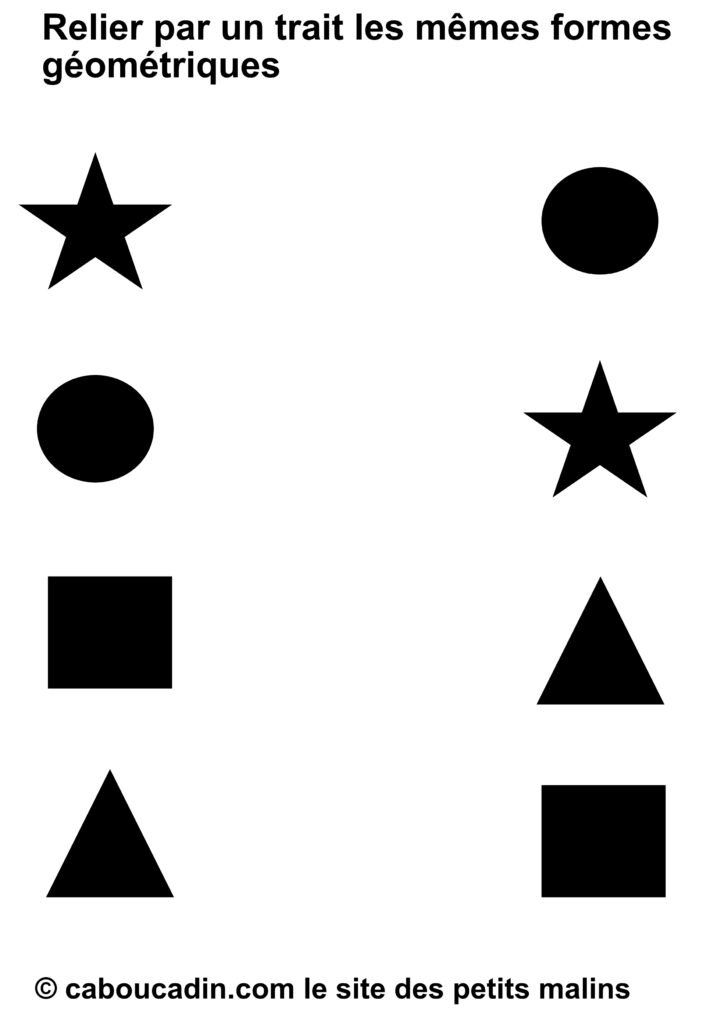 Il faut que tu regardes la forme dans la colonne de gauche, puis que tu cherches la même dans la colonne de droite, et… que tu les relies avec un trait ! ✏️