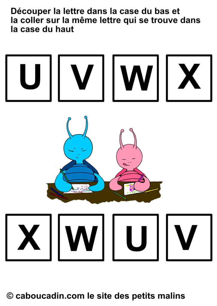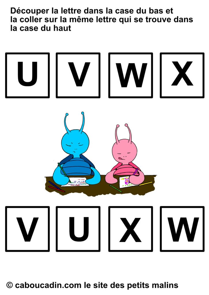 Tu continues avec les autres lettres, toujours en regardant bien, en comparant, et en t’amusant. C’est un peu comme un puzzle géant, mais avec des lettres !