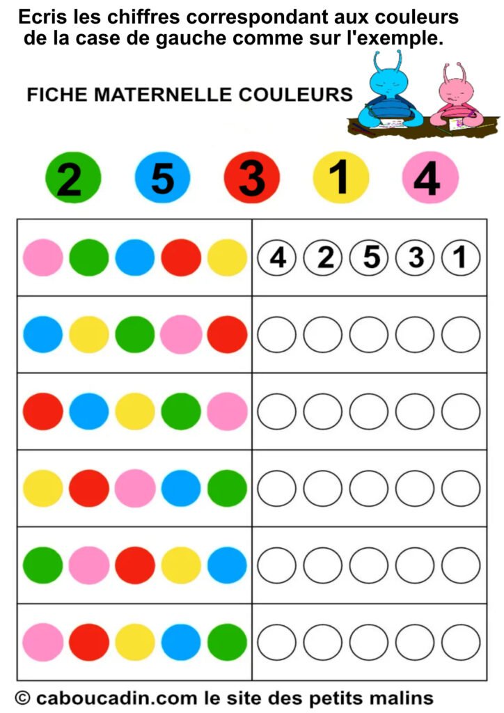 đ Un titre qui donne envie : Tout en haut Ă gauche, on lit « FICHE MATERNELLE COULEURS ». Ăa annonce la couleur, littĂ©ralement !