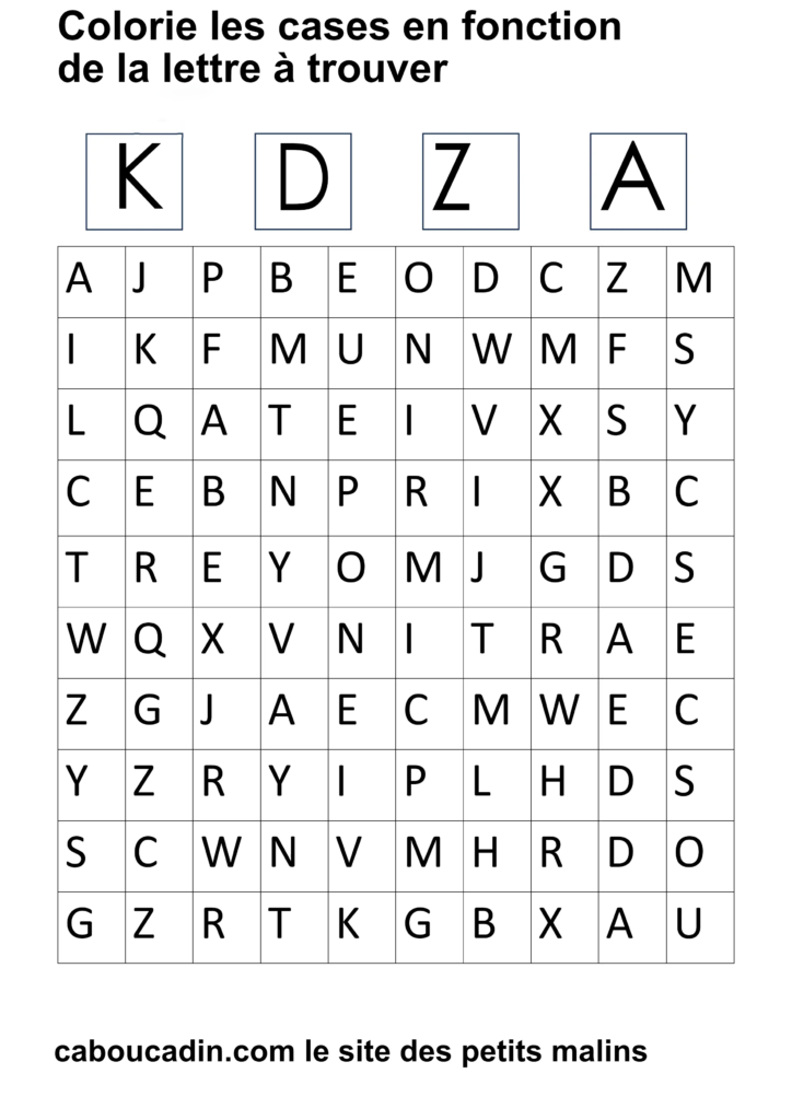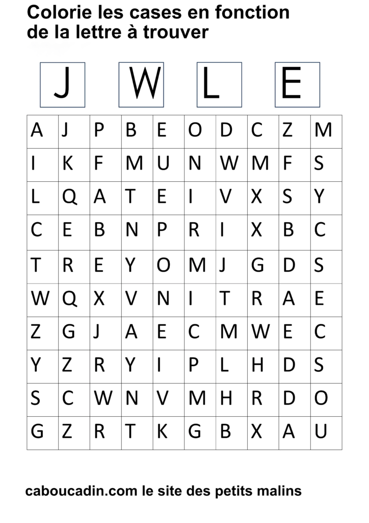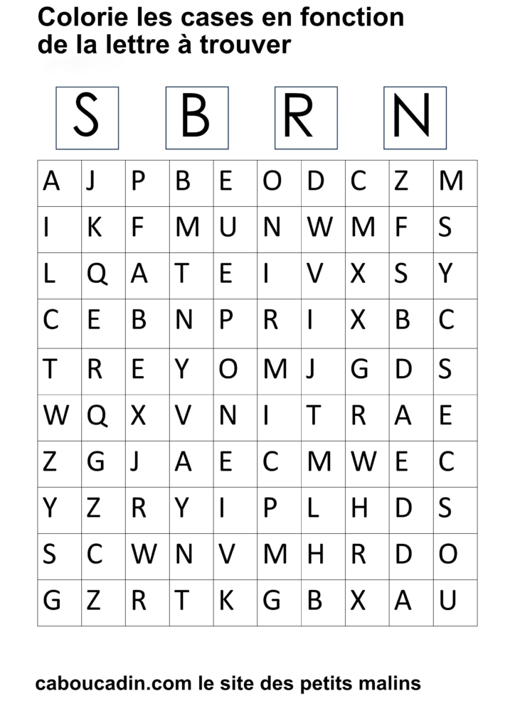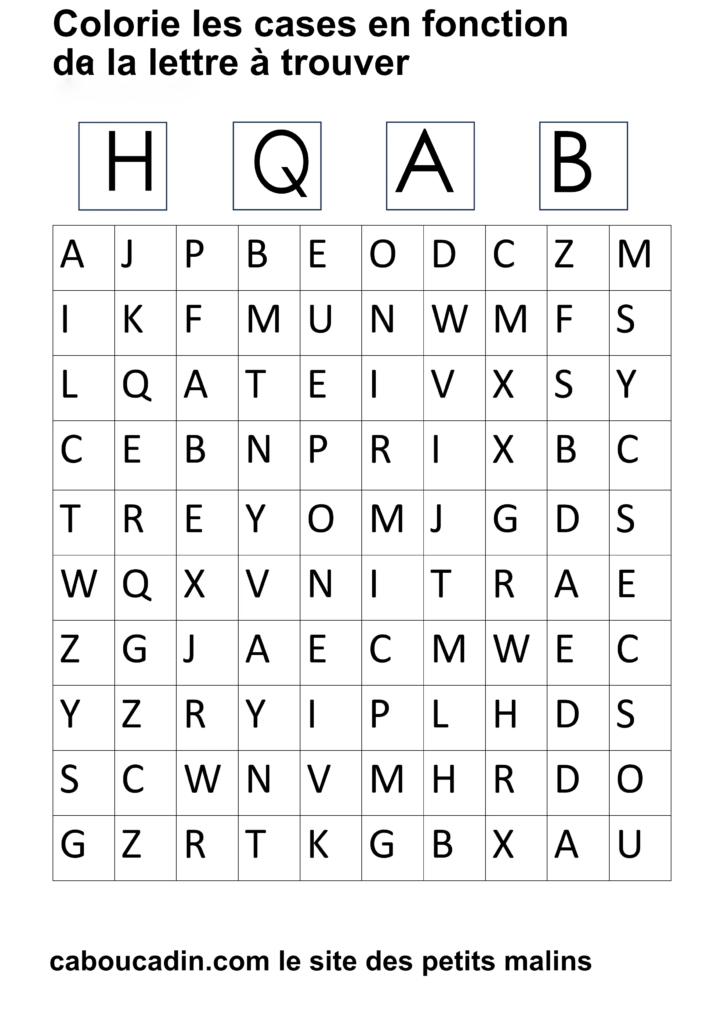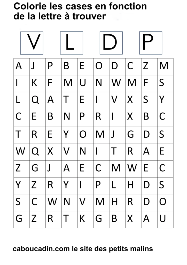 15 fiches maternelles pour reconnaitre les lettres de l’alphabet. Des fiches de français pour apprendre à reconnaitre les différentes lettres de l’alphabet. Le principe de la fiche est simple : il y a un tableau avec 100 cases, dans chaque case il y a une lettre de l’alphabet. En haut de la fiche, il y a 4 grandes cases avec chacune une lettre à l’intérieur. Cherche et trouve les lettres qui correspondent et colorie la case de la couleur que tu veux. Ces fiches maternelles sont gratuites et réalisées par moi même.
