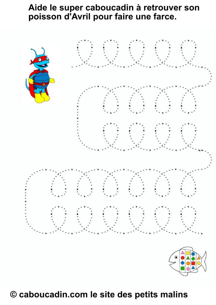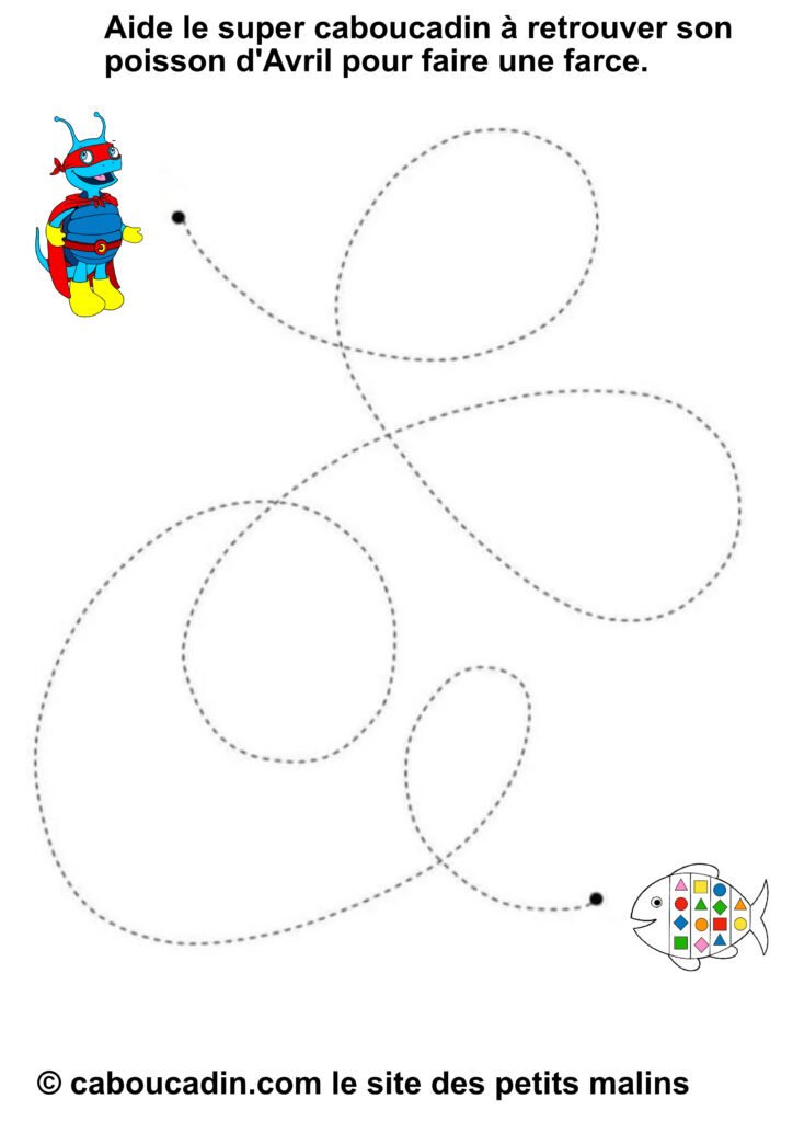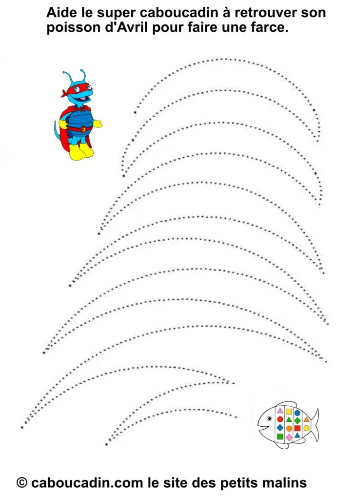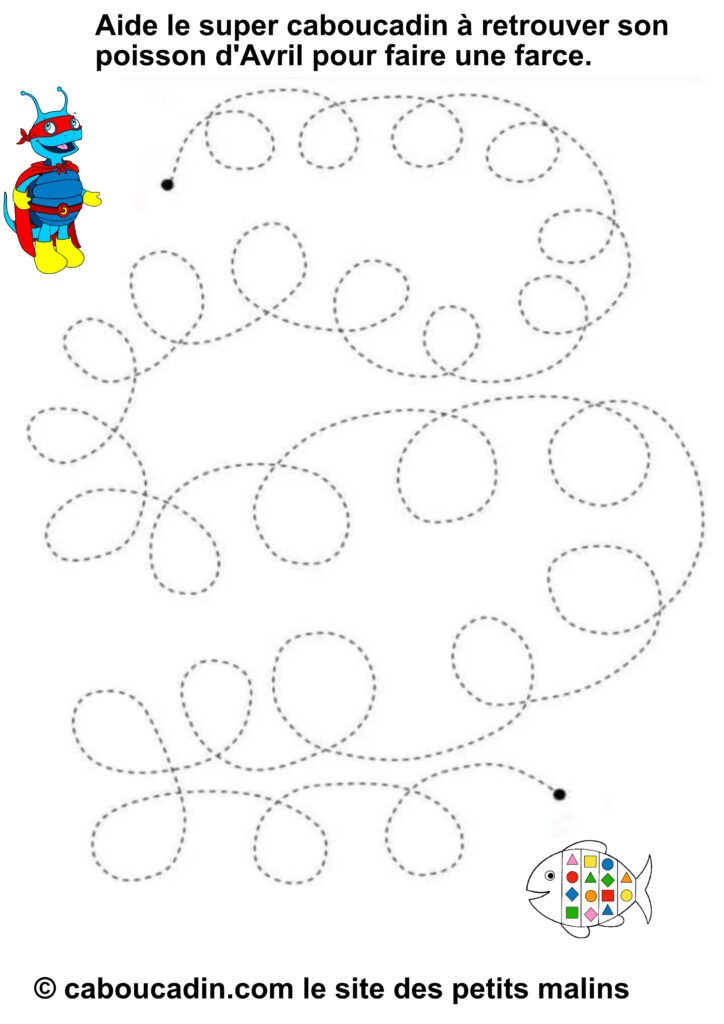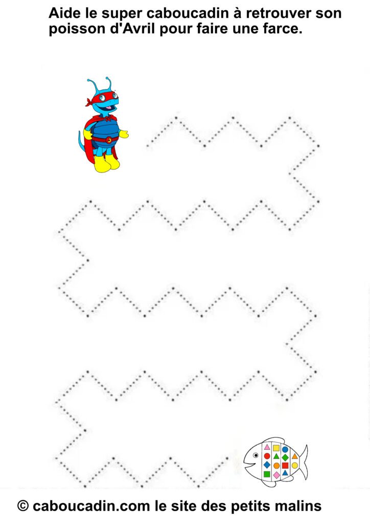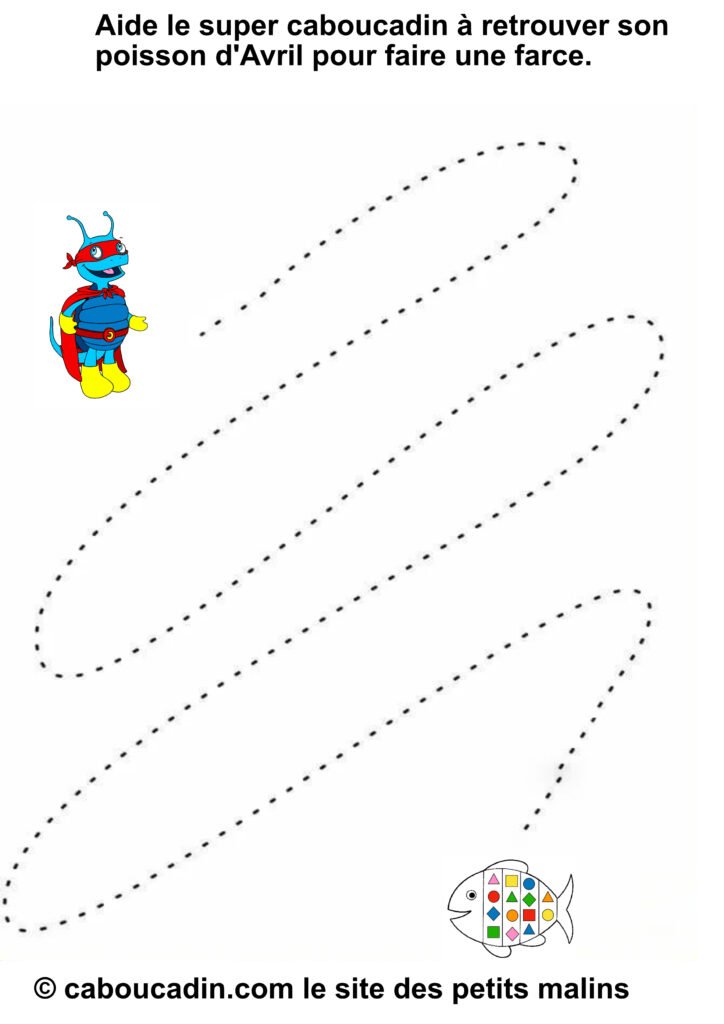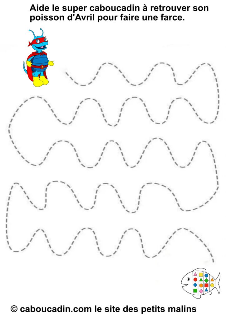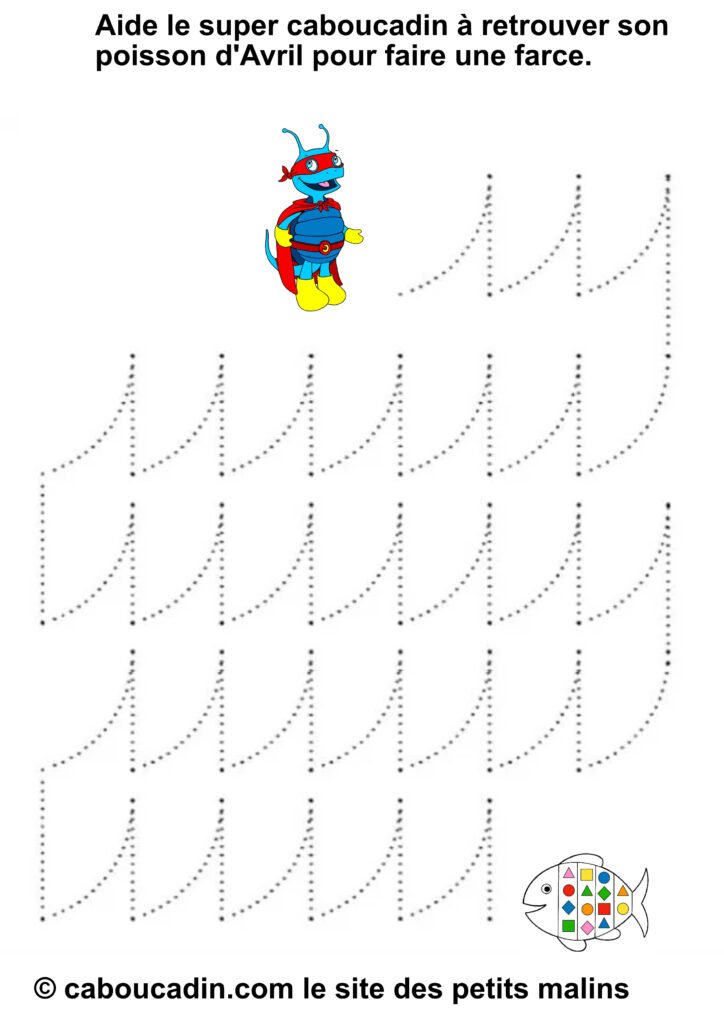 🎨 Une fiche de graphisme trop rigolote pour le poisson d’Avril ! 20 fiches graphismes maternelle avec un poisson d’Avril . 🐟 Le 1er avril, c’est le jour des blagues et des farces ! Et quoi de mieux qu’un joli poisson d’Avril pour s’amuser tout en apprenant ? Aujourd’hui, on te propose une fiche de graphisme spéciale avec un héros pas comme les autres : Super Caboucadin ! 🦸♂️