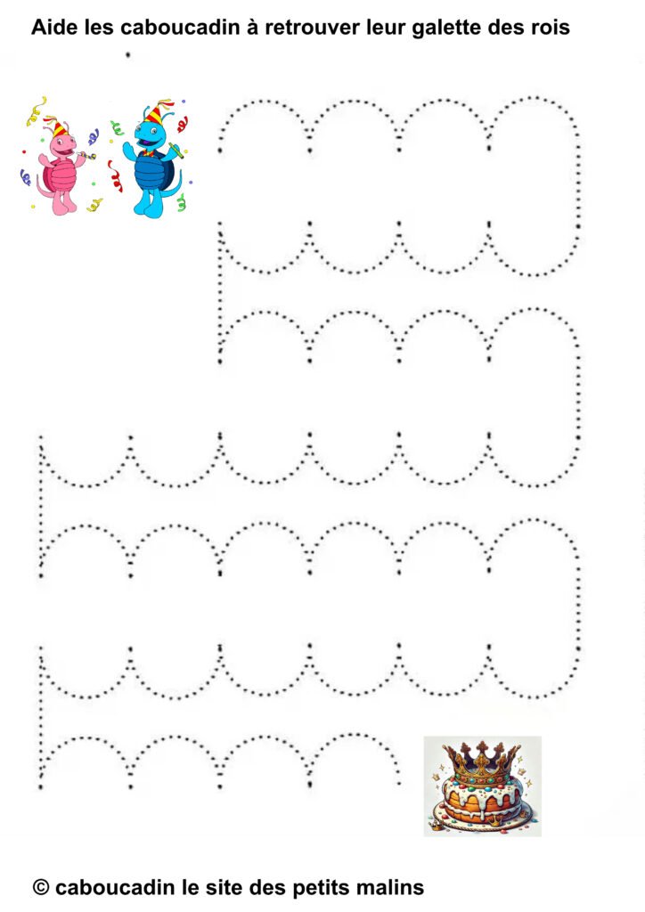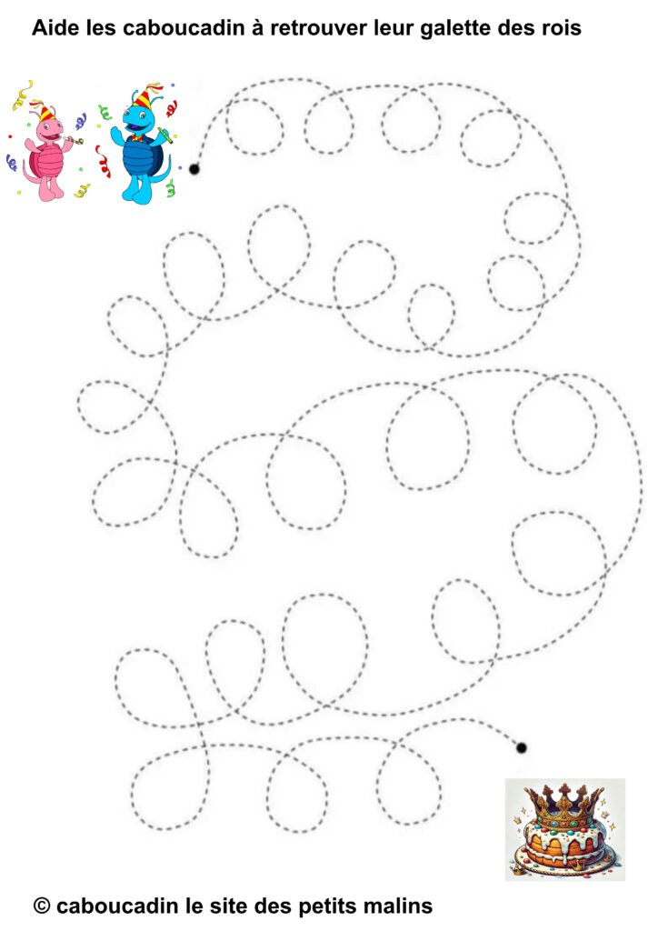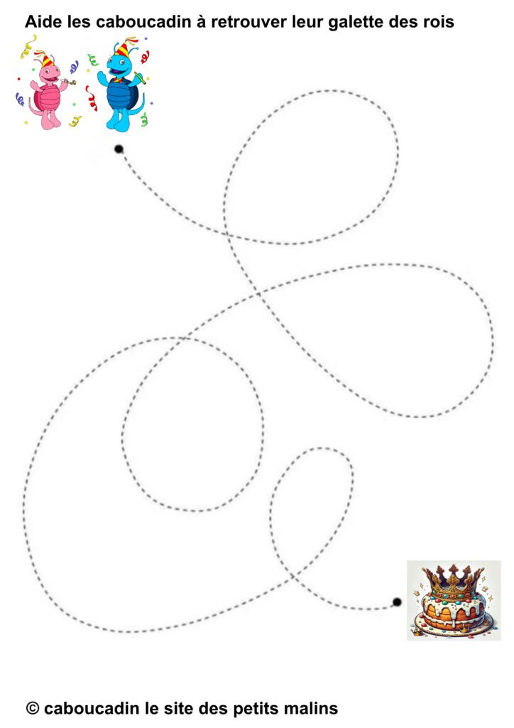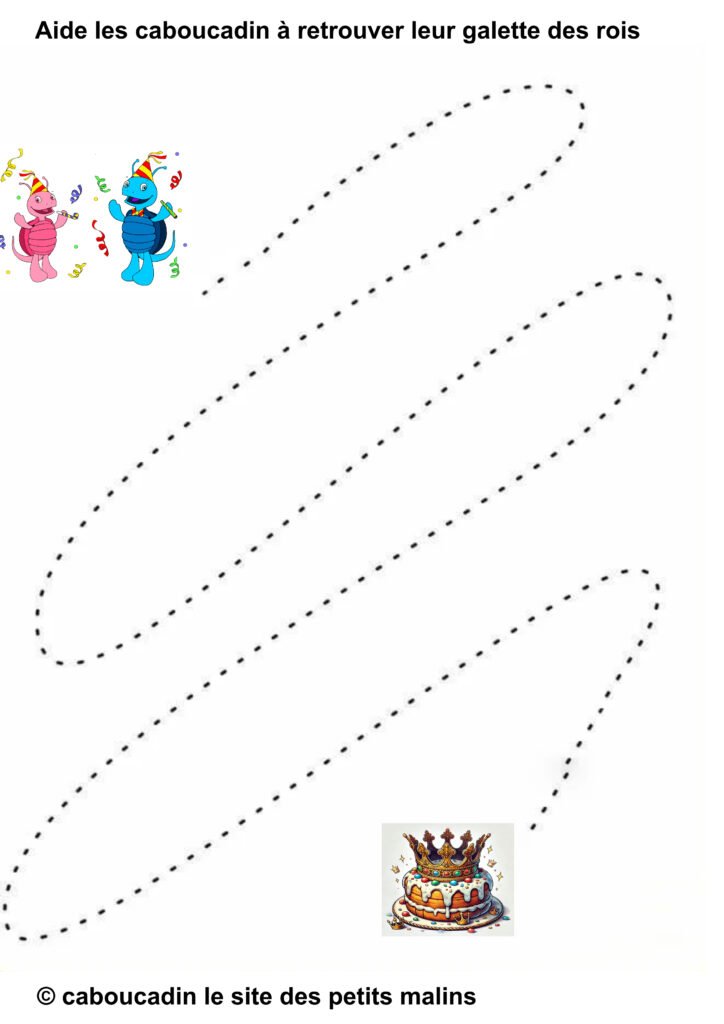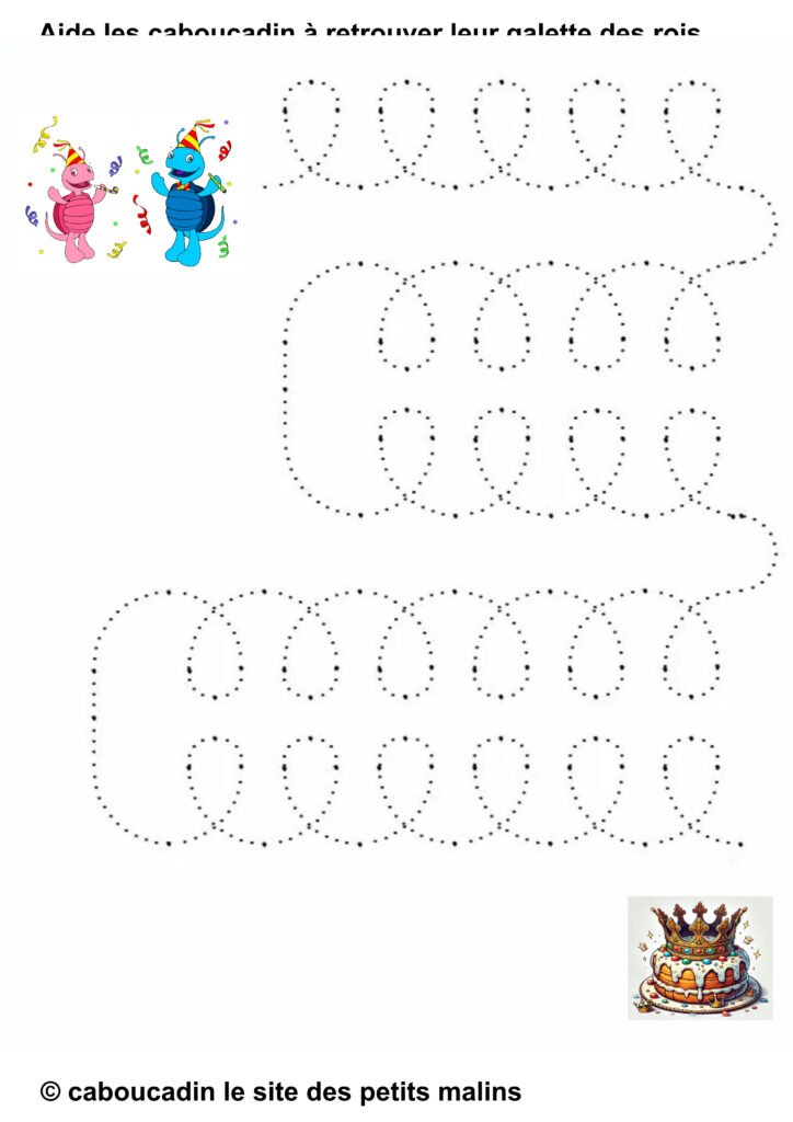 Mots-clés : activité ludique, motricité fine, caboucadin, galette des Rois, tracé, enfant.