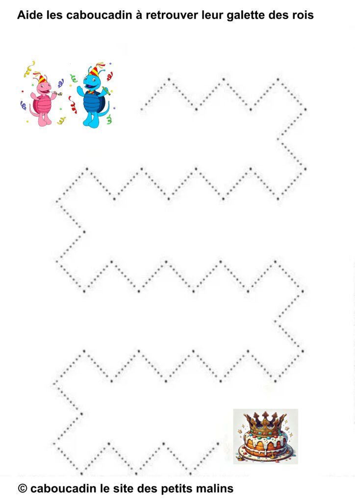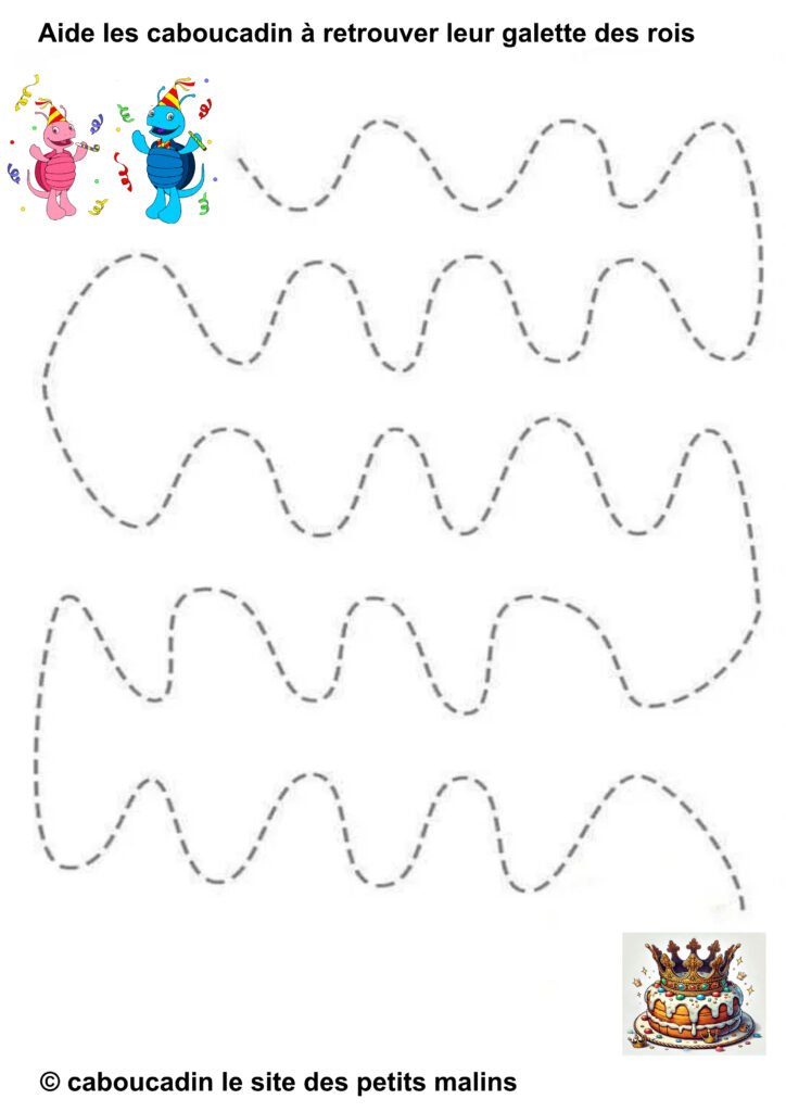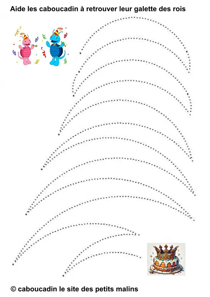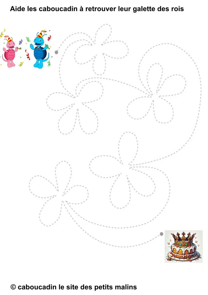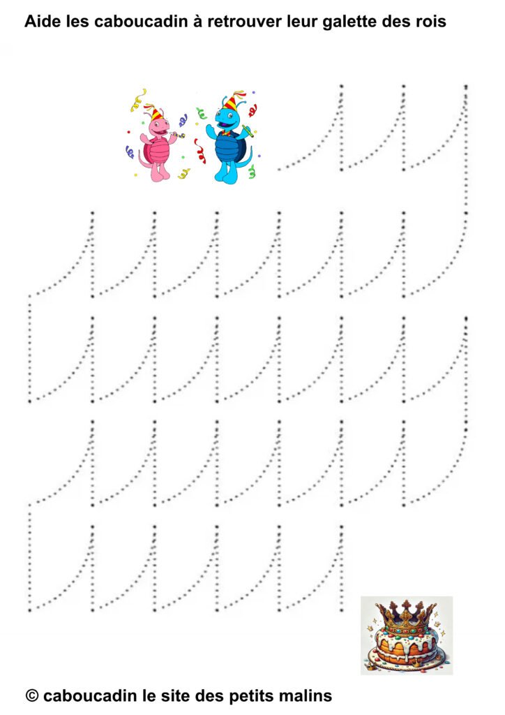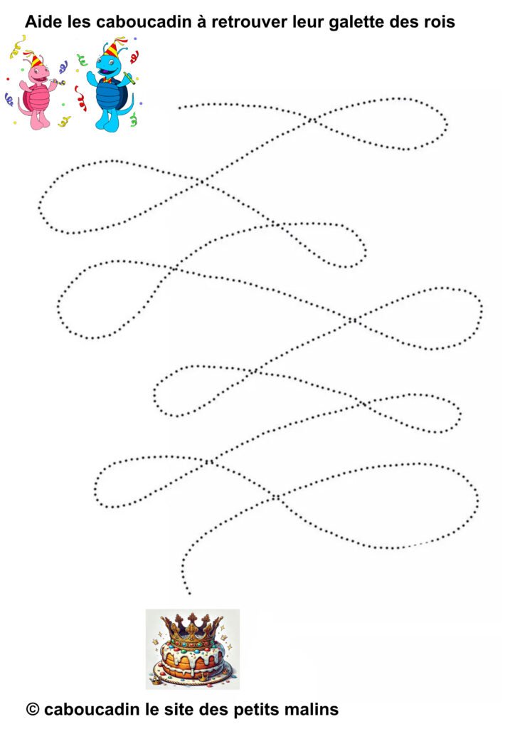 Mots-clés : activité ludique, motricité fine, caboucadin, galette des Rois, tracé, enfant.