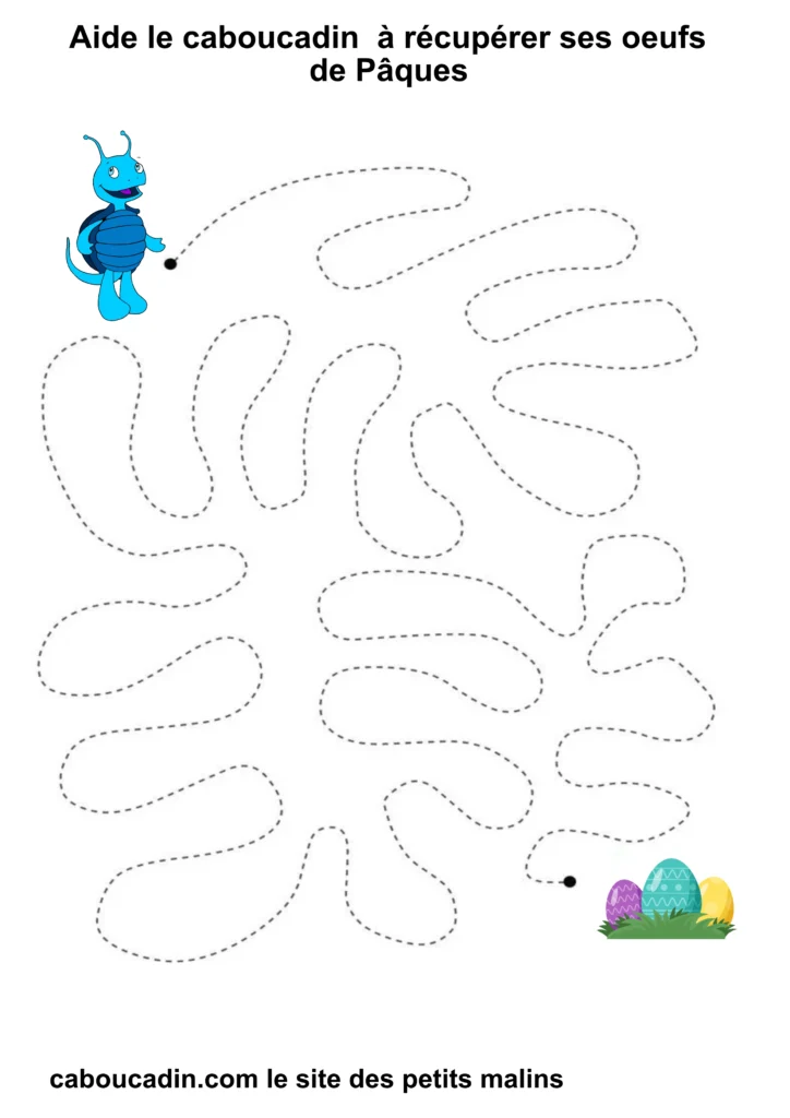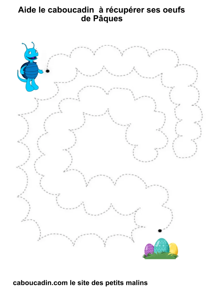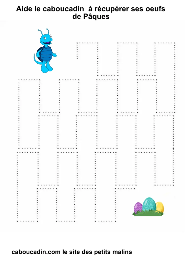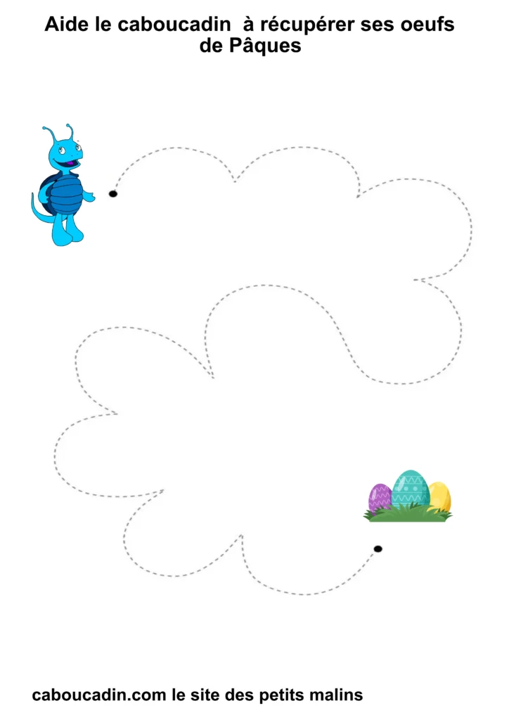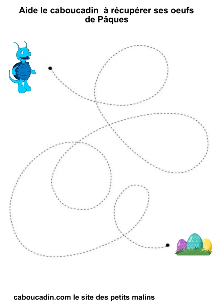En suivant les lignes avec ton crayon, tu vas aider Caboucadin à retrouver ses œufs. C’est comme si tu étais un super-héros qui donne des pouvoirs à tes doigts pour écrire de belles lettres !