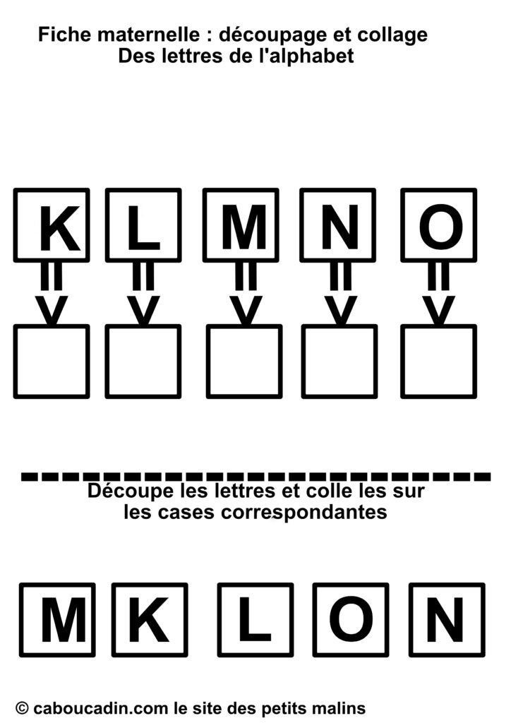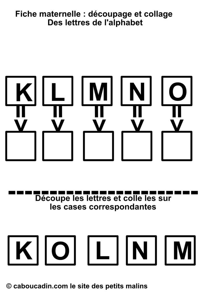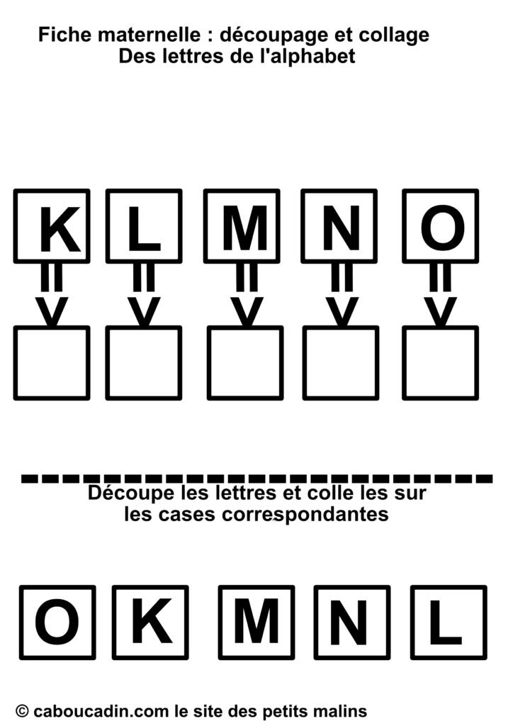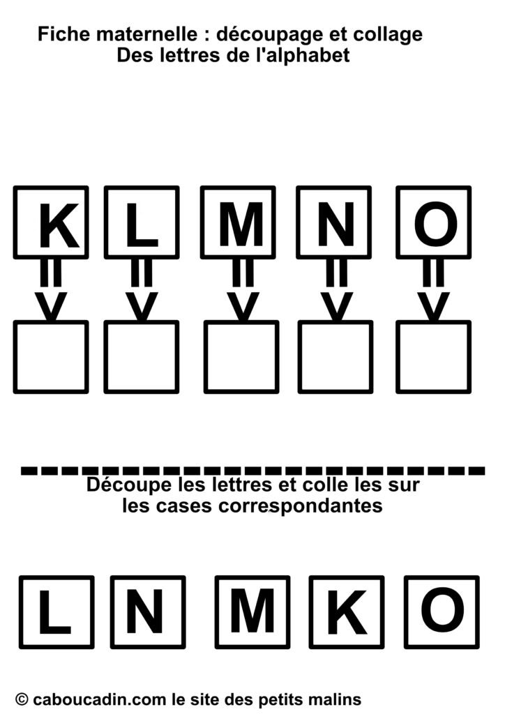 En résumé, cette fiche de découpage et collage est une activité à la fois simple et complète, qui mêle apprentissage des lettres et développement des compétences manuelles. Que ce soit pour compléter les apprentissages à l’école ou pour occuper les enfants à la maison de façon intelligente, elle offre une expérience enrichissante et ludique. Les enfants adorent jouer avec les ciseaux et la colle, et avec cette fiche, ils apprennent en même temps. Un vrai succès pour les petits de maternelle !