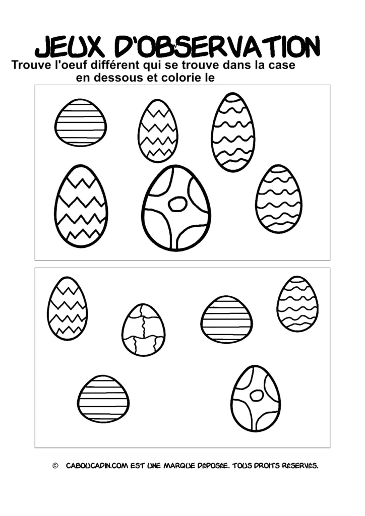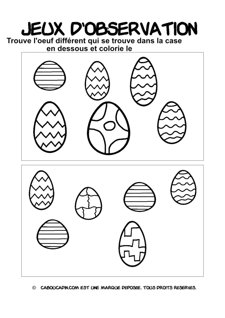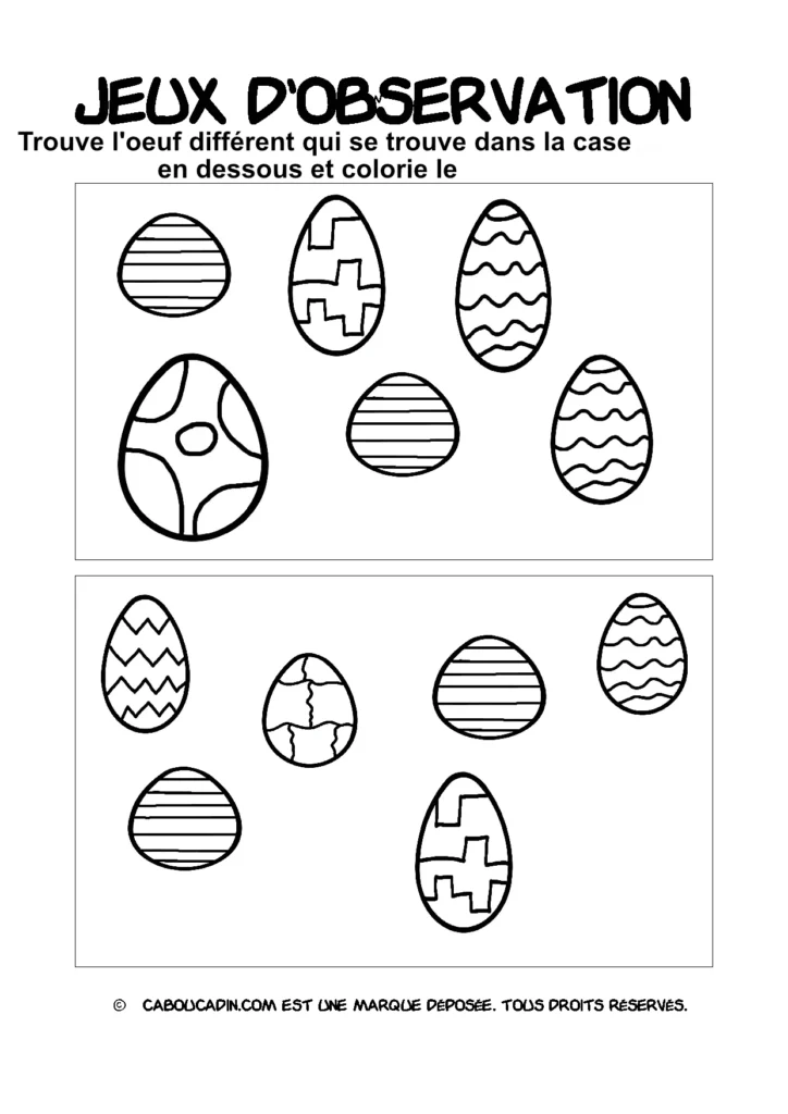 5 fiches maternelles Pâques : Trouvez l'oeuf différent
