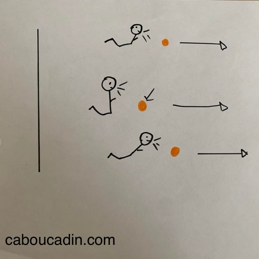Esquive de balle : Un enfant lance la balle sur les autres qui doivent l’esquiver en se déplaçant ou en s’accroupissant.