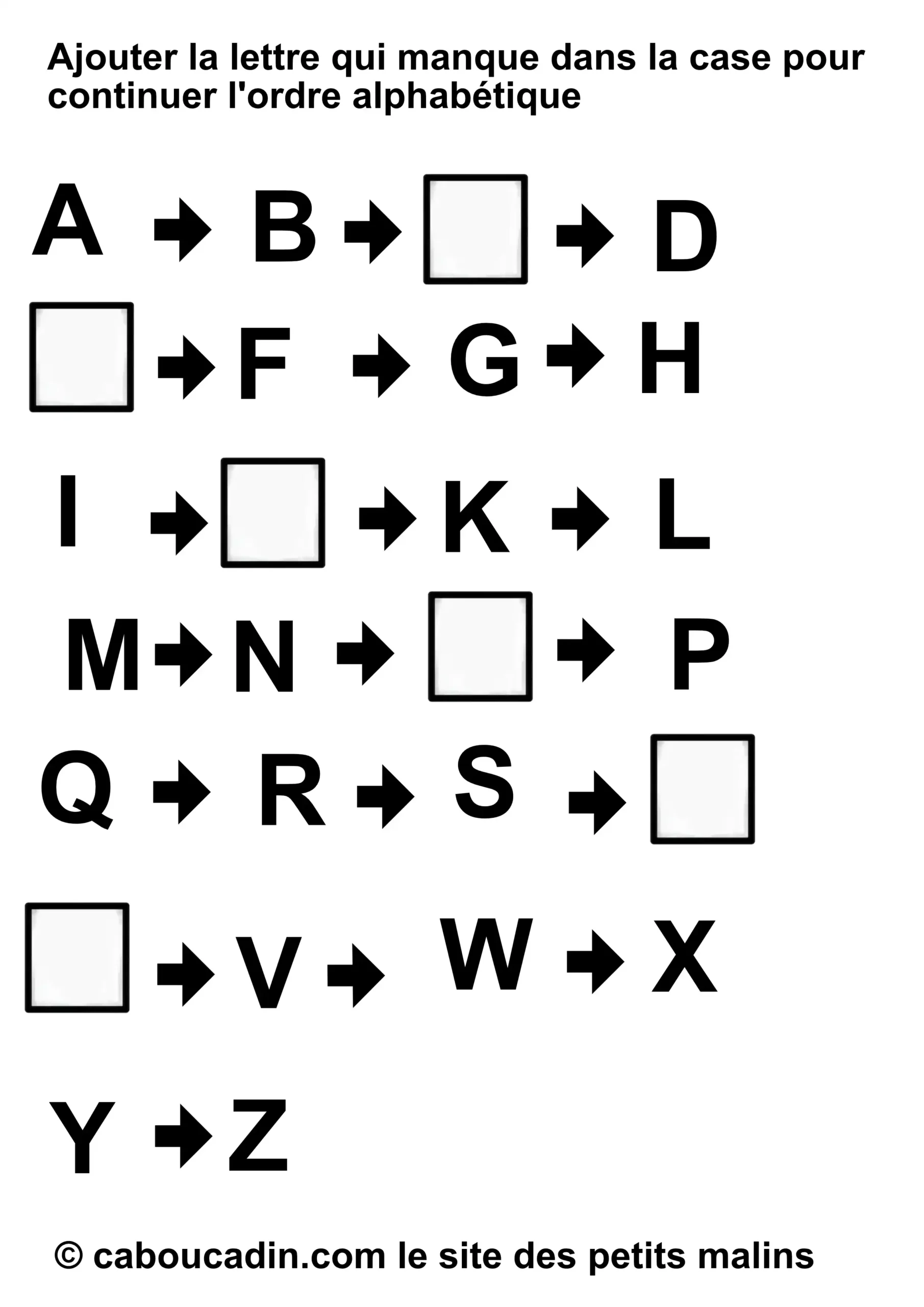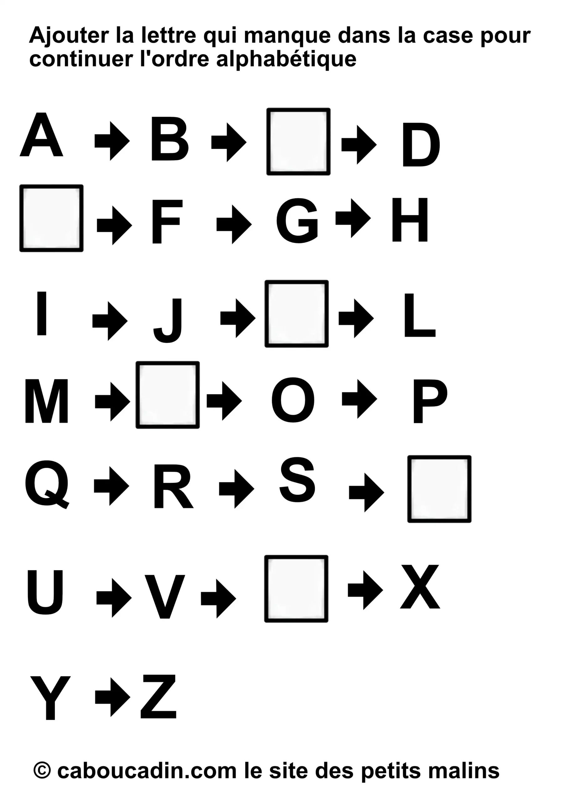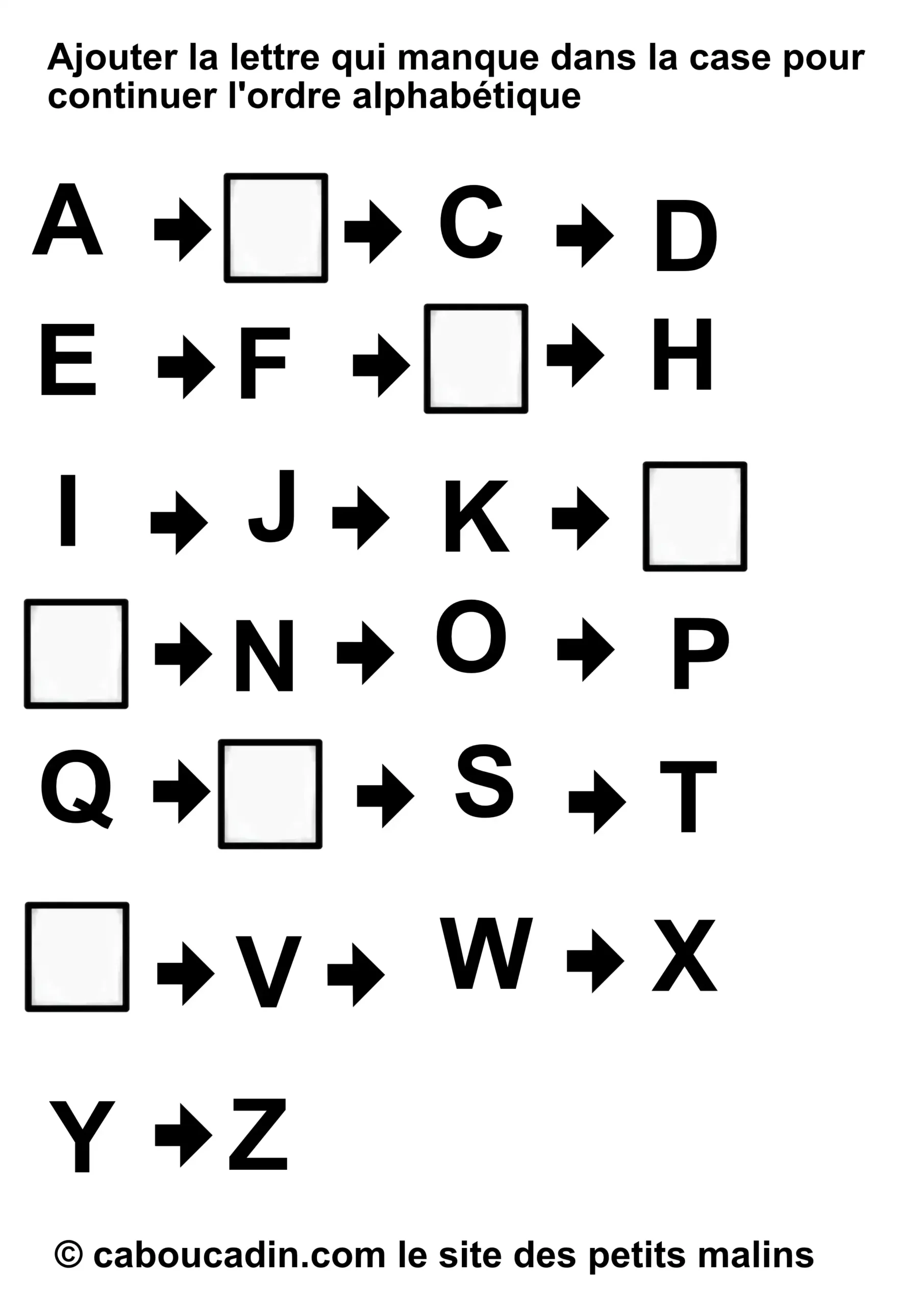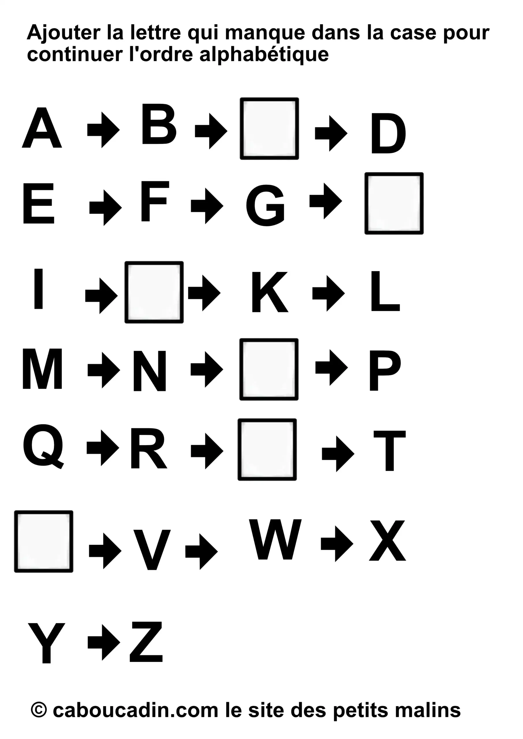 L’enfant doit regarder, réfléchir, et écrire la lettre manquante dans la case vide.