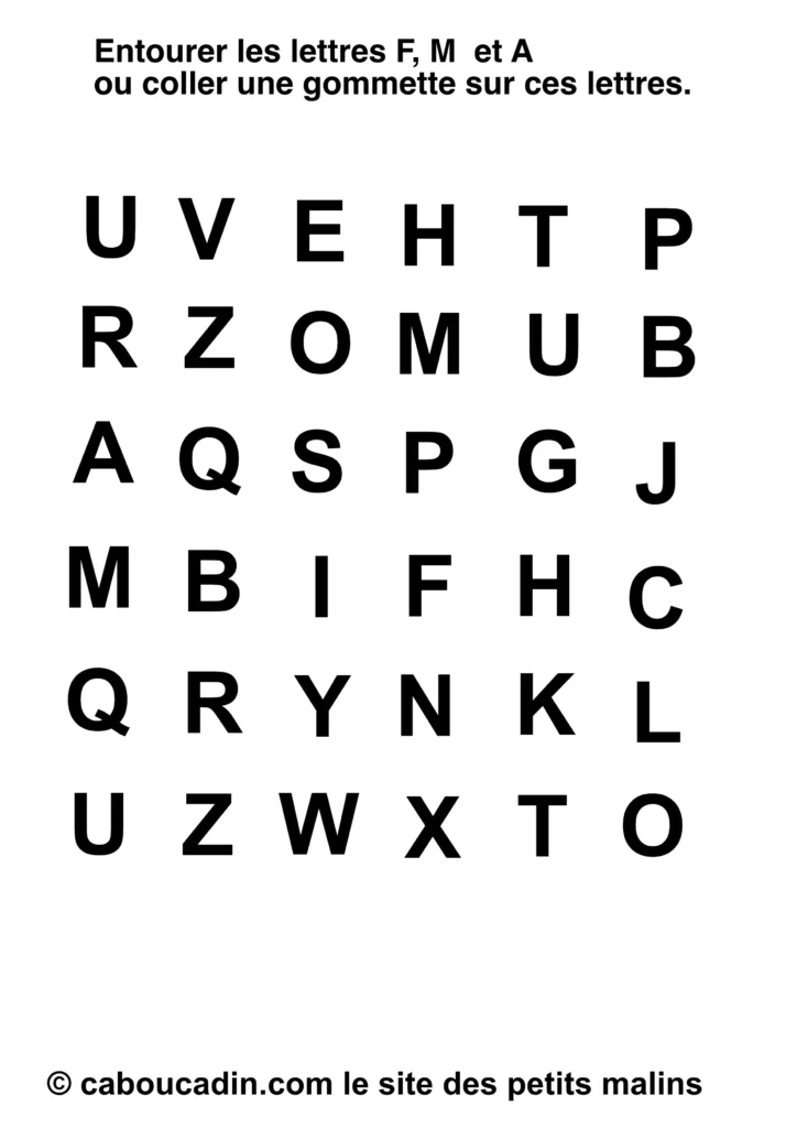 Fiche maternelle alphabet : reconnaître et entourer les lettres