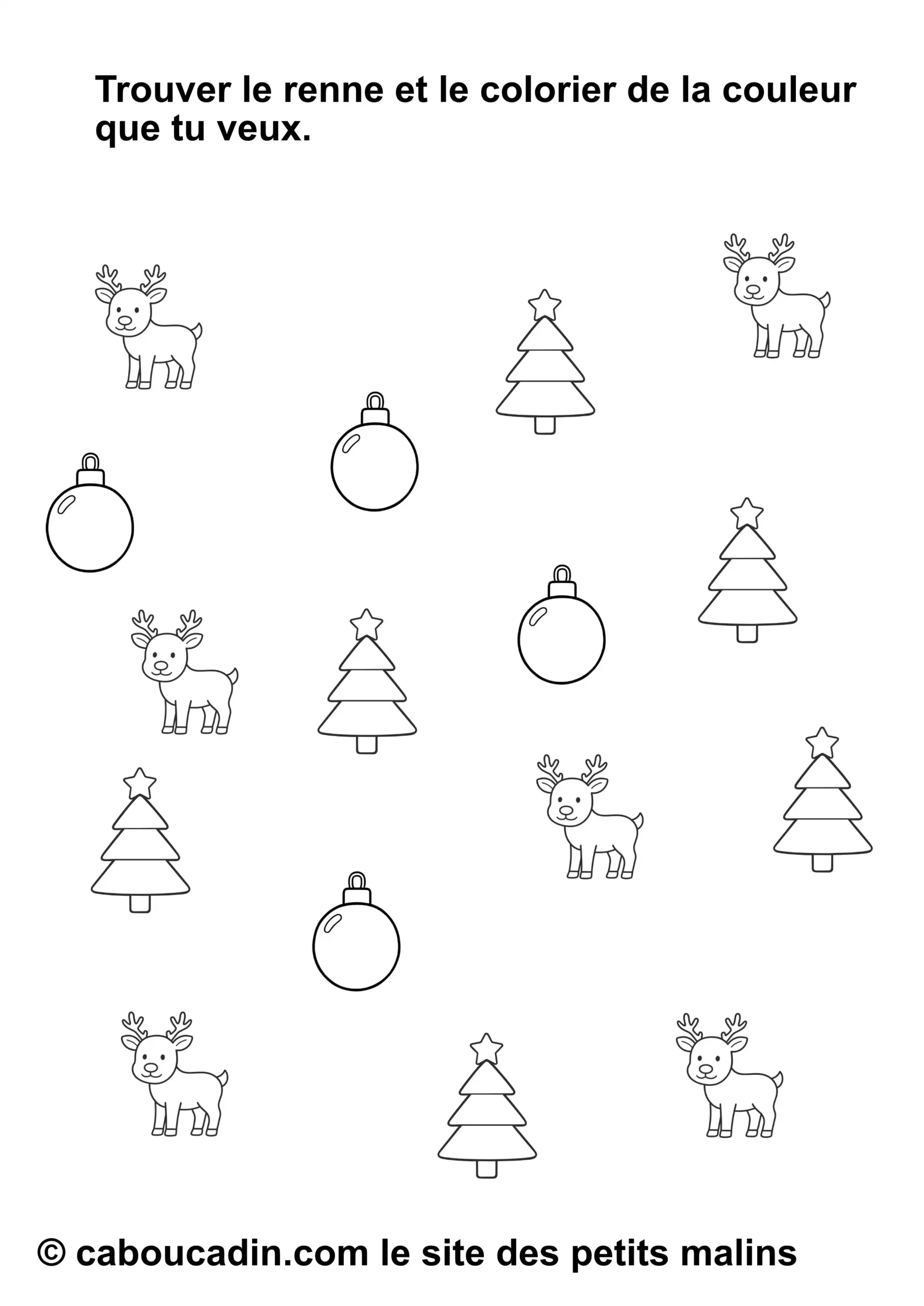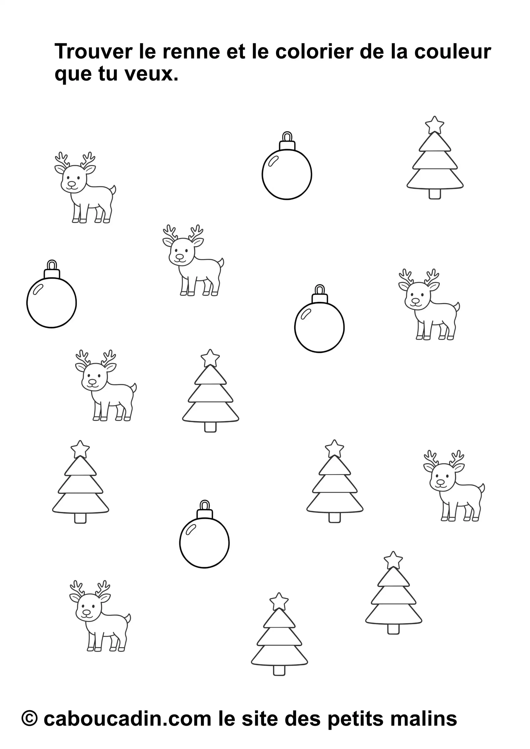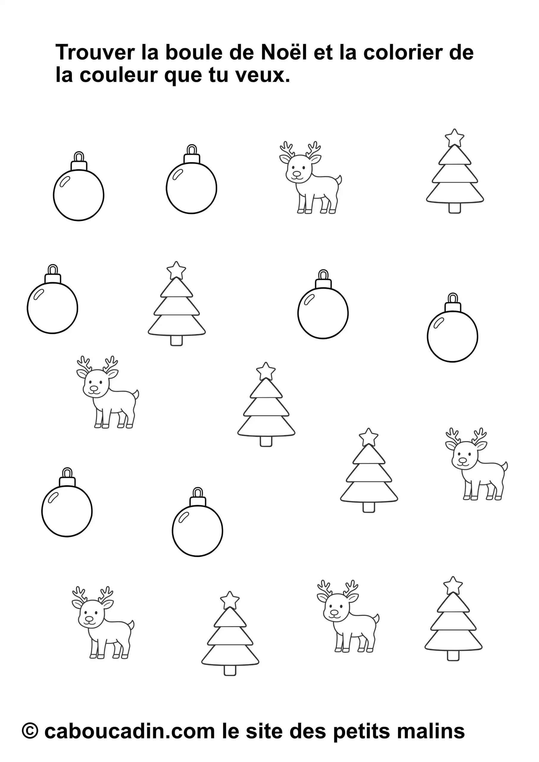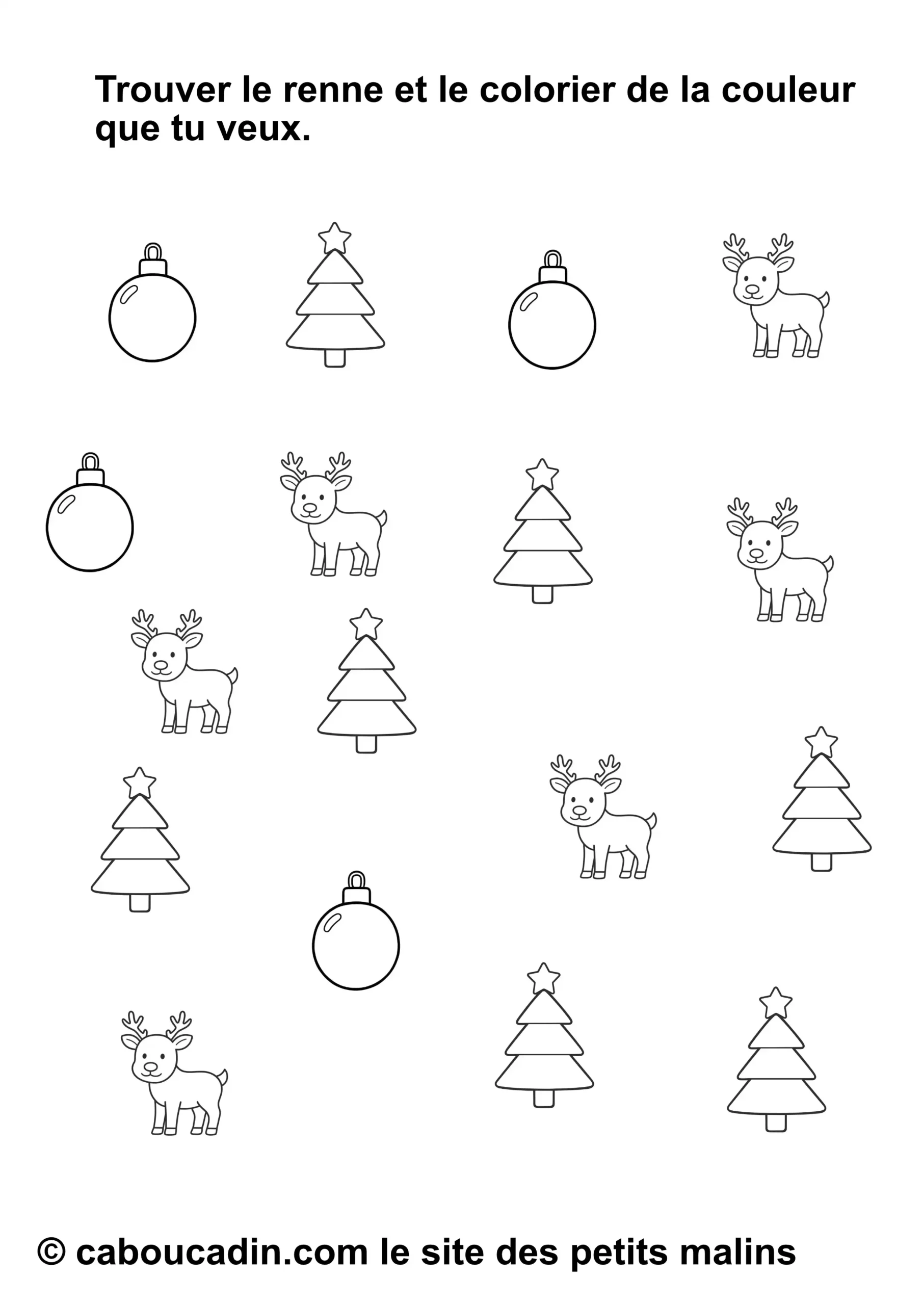Fiche Maternelle de Noël : Trouver et Colorier les Boules, Sapins et Rennes. Aujourd’hui, j’ai envie de t’emmener dans une petite aventure toute douce… une aventure qui sent la neige fraîche, les guirlandes accrochées de travers, le chocolat chaud et même un peu le rire des lutins du Père Noël. Oui oui, ceux qui font « hihi » en se cachant derrière les cadeaux !