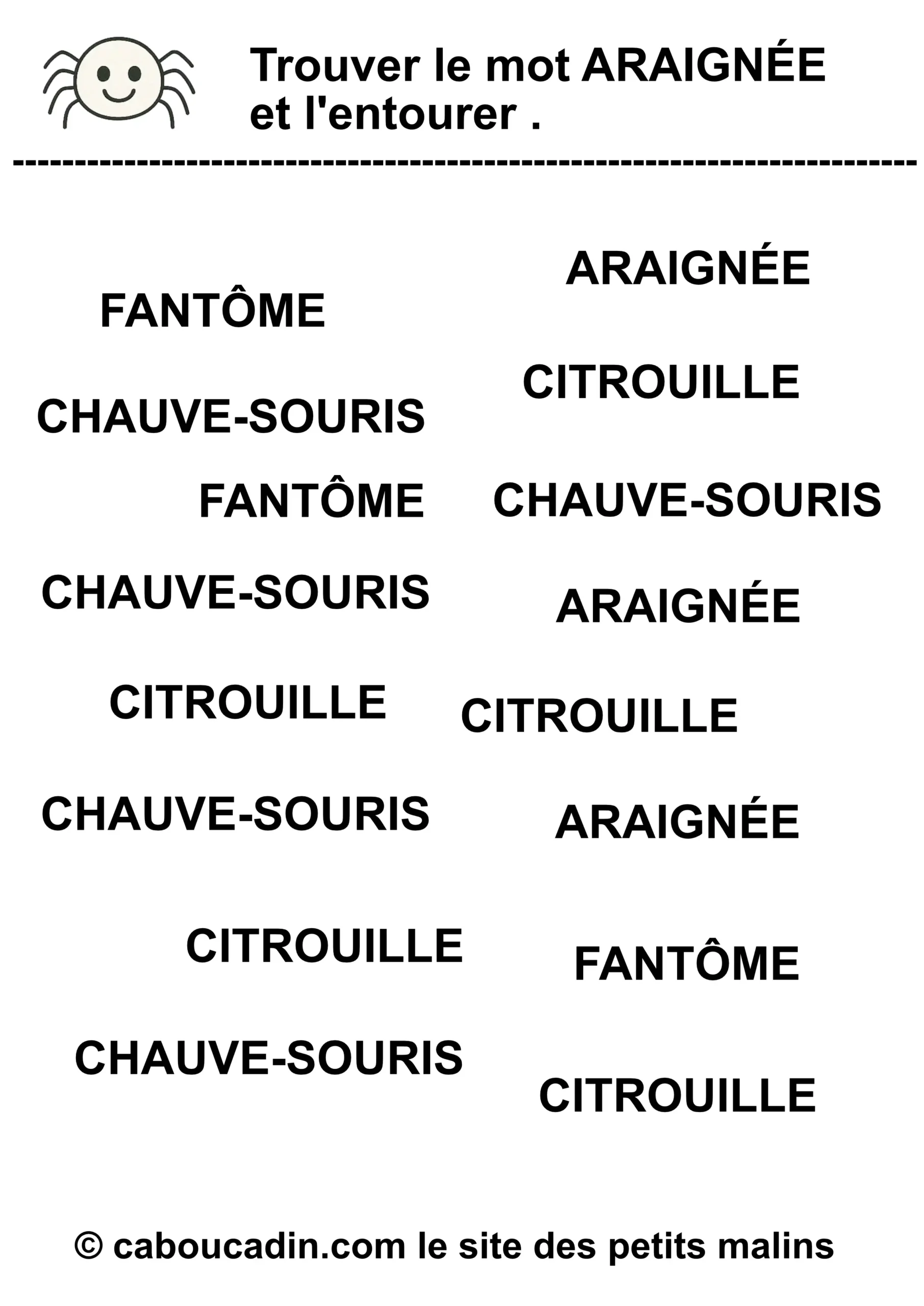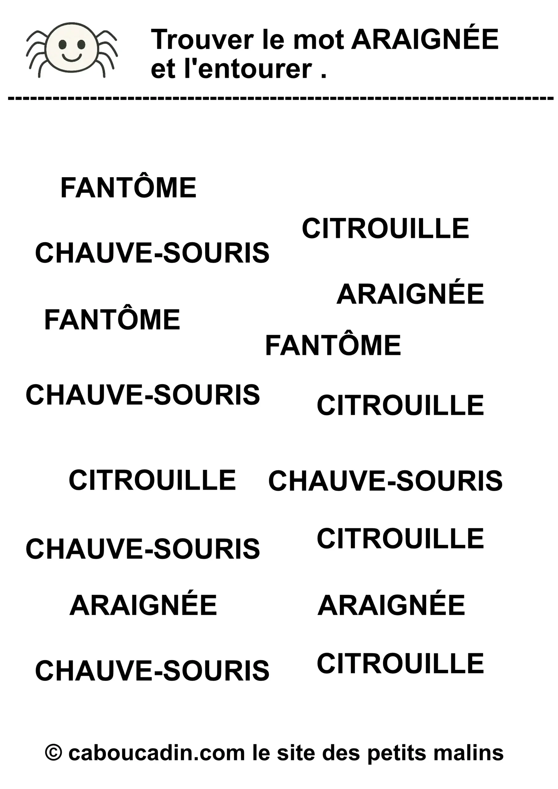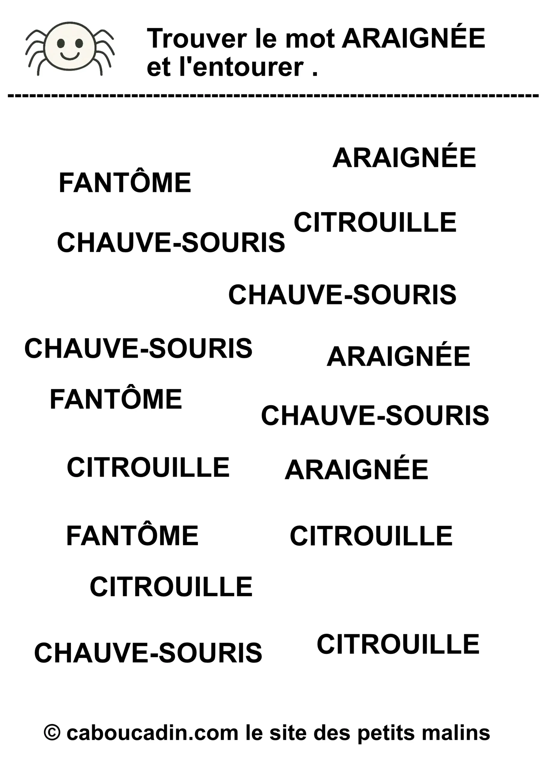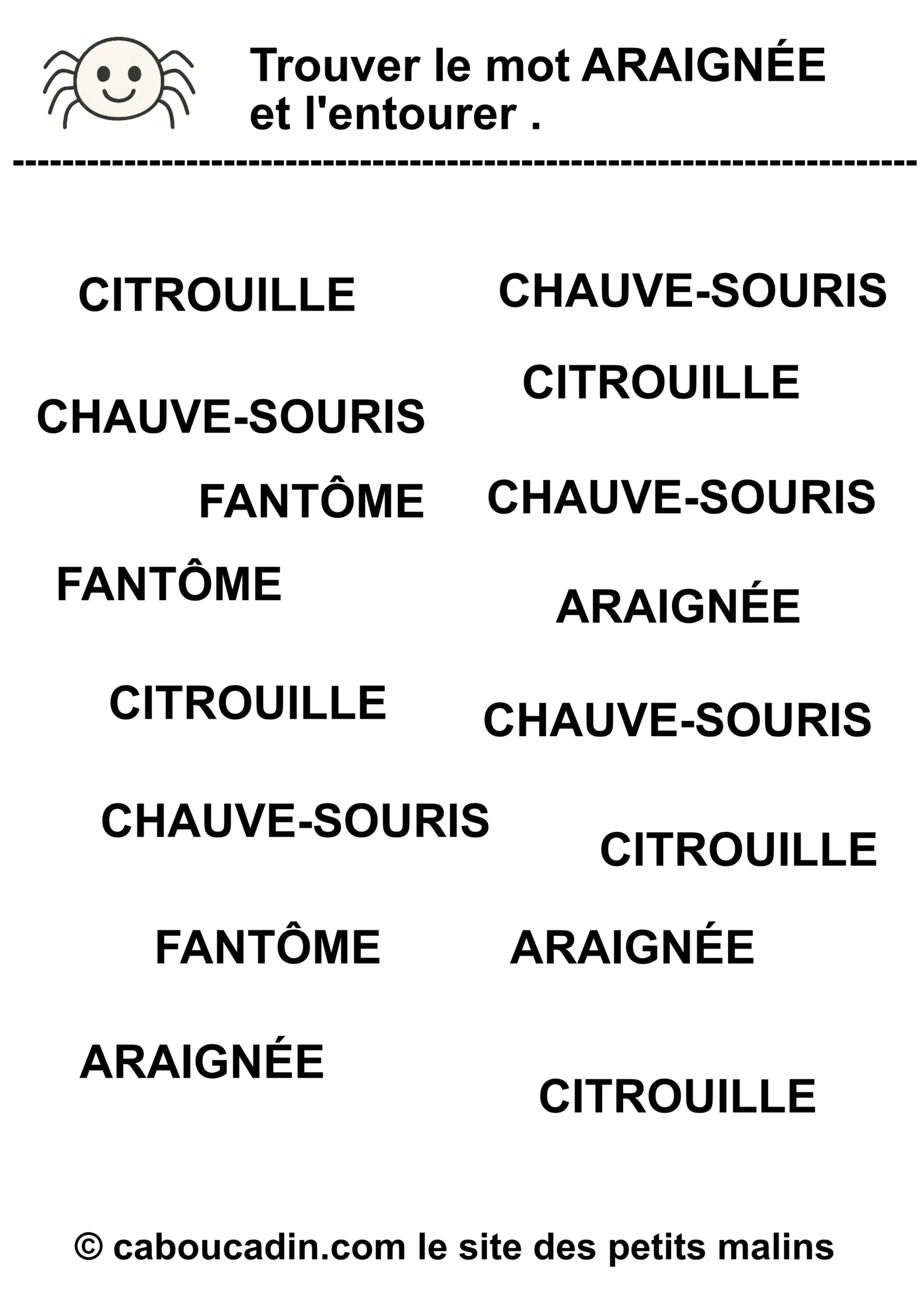 Sur la fiche, il y a plein de mots d’Halloween. Tu reconnais sûrement certains :