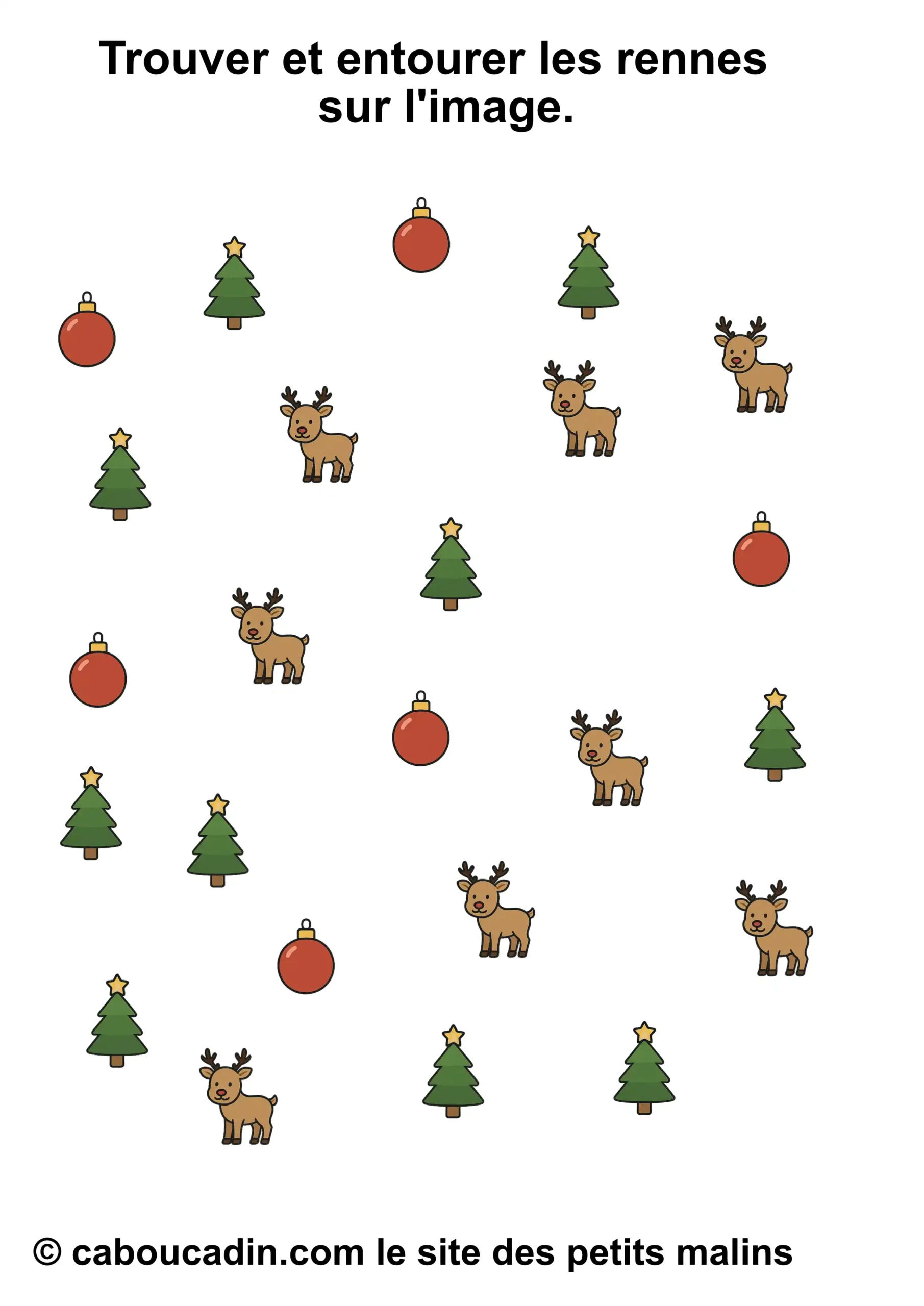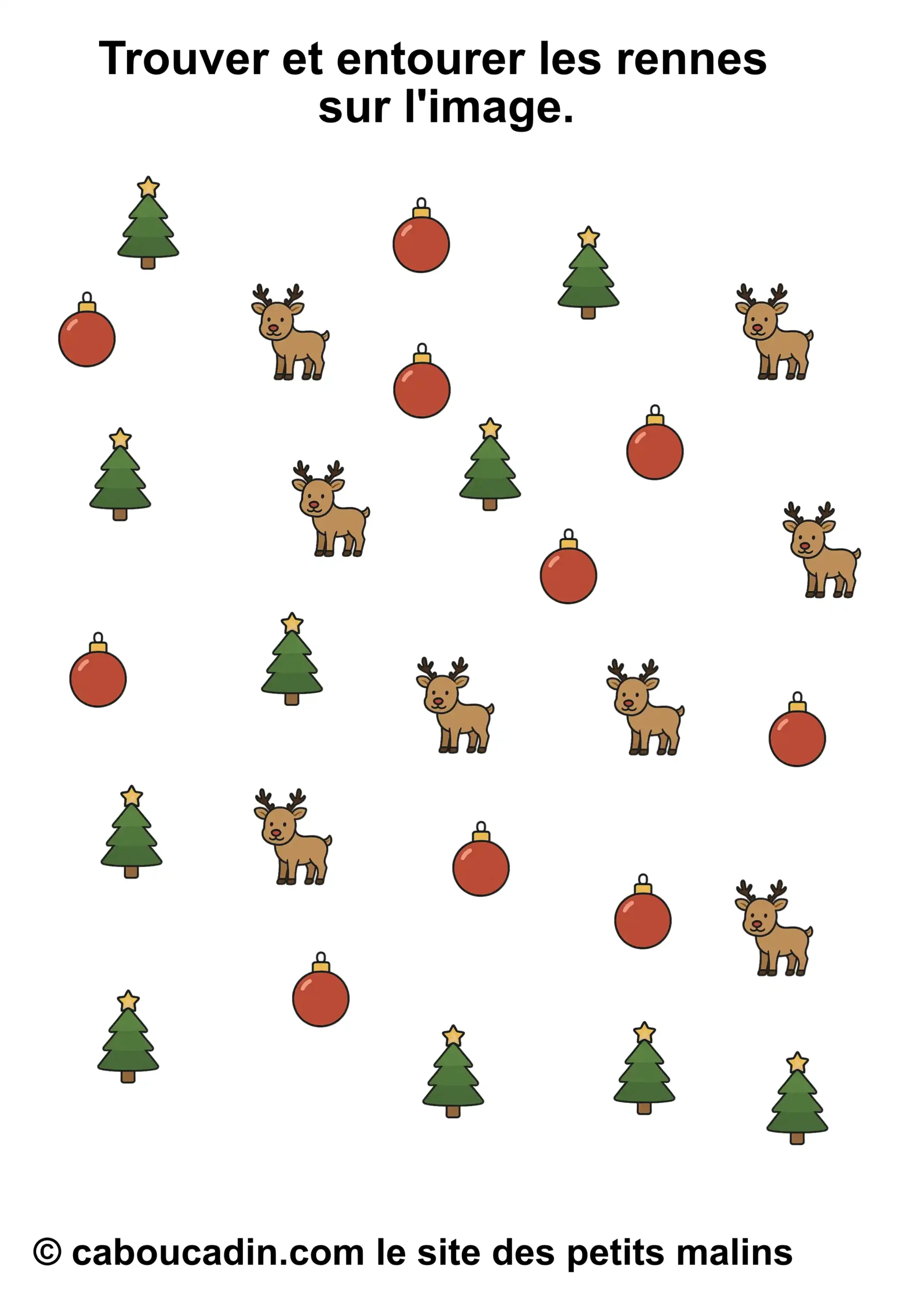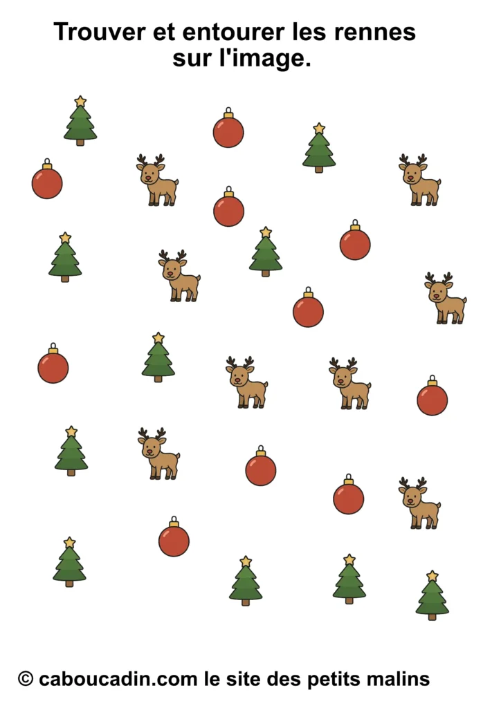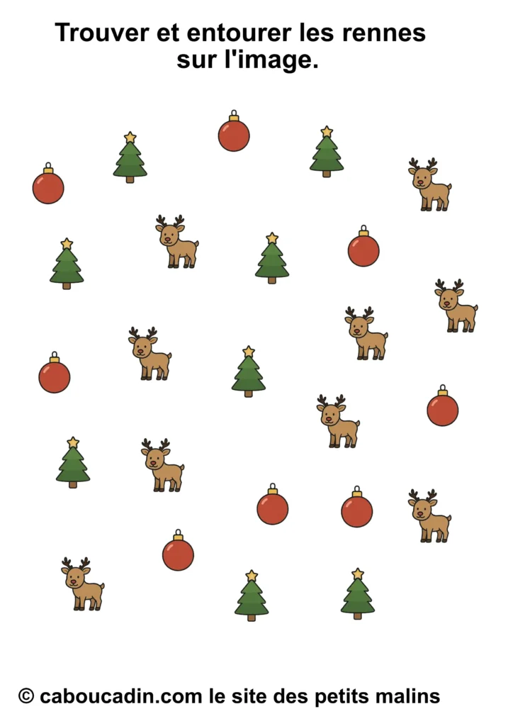 👉 Ton travail, c’est d’entourer tous les rennes.
