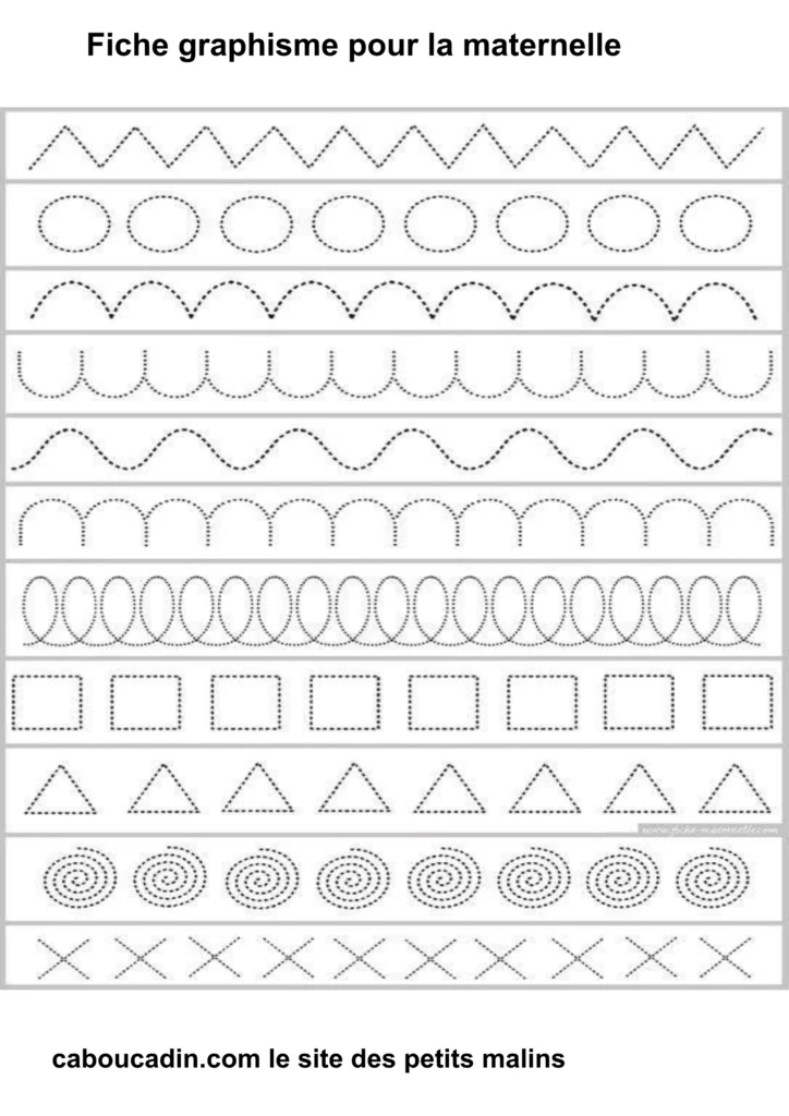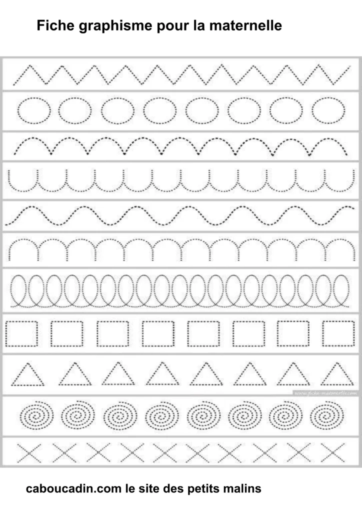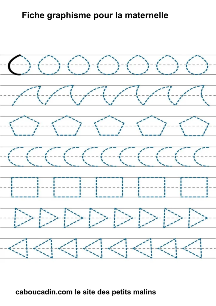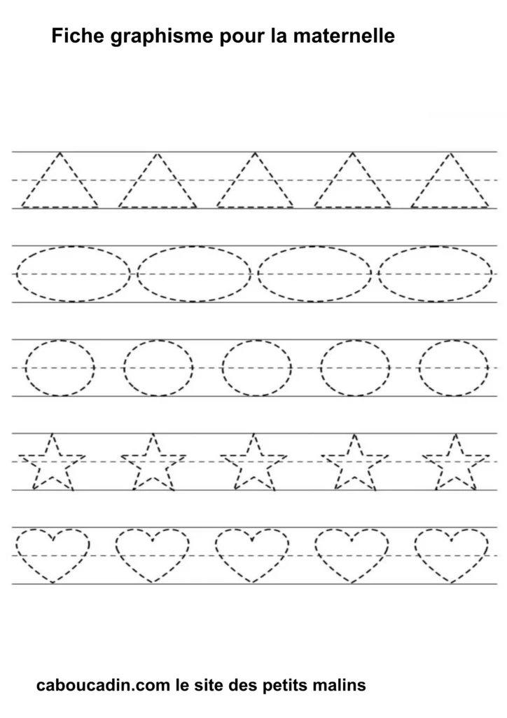 Fiches graphisme pour les MS et GS : Préparer l’écriture à la maternelle . Fiche d’exercice de maternelle pour apprendre à dessiner des formes géométriques simples