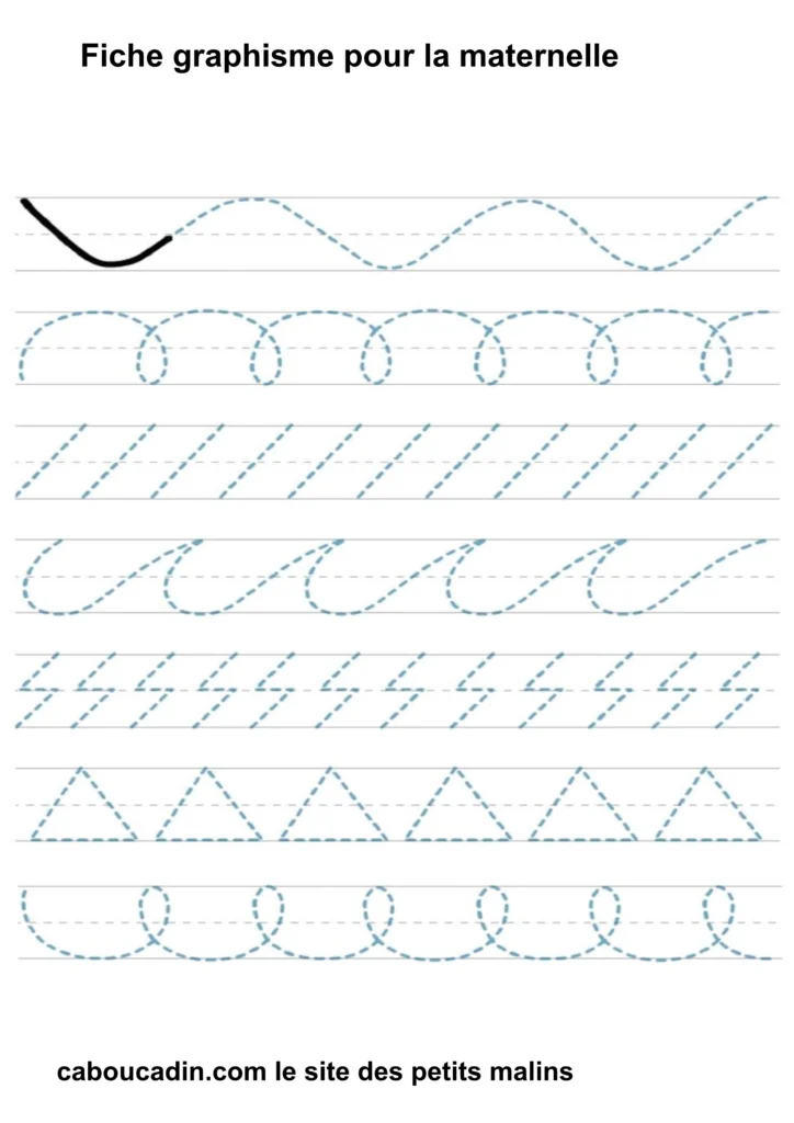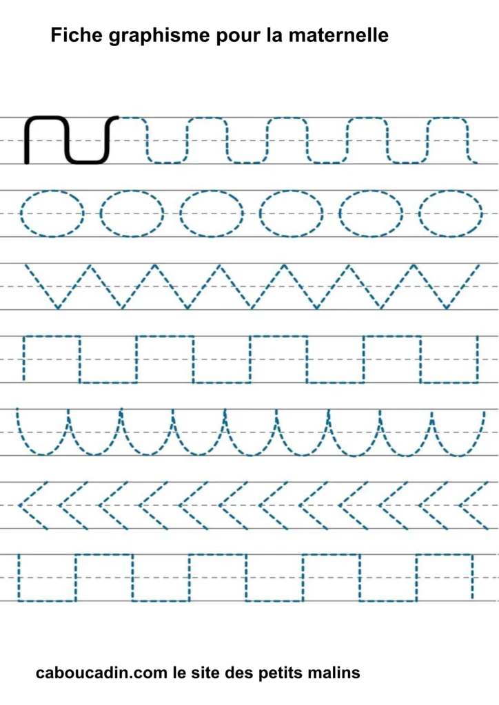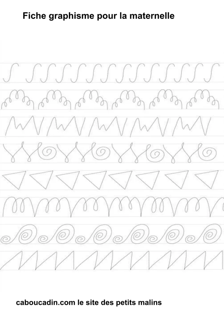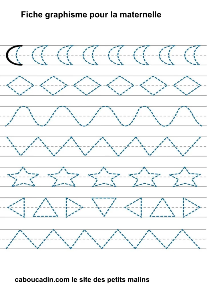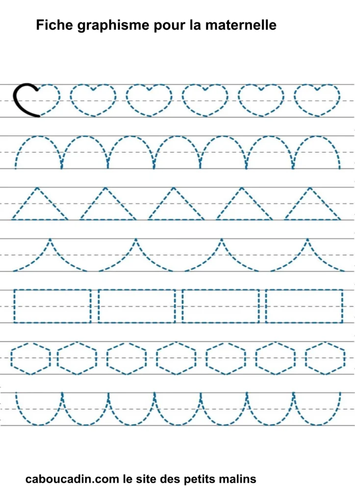 Fiches graphisme pour les MS et GS : Préparer l’écriture à la maternelle . Fiche d’exercice de maternelle pour apprendre à dessiner des formes géométriques simples
