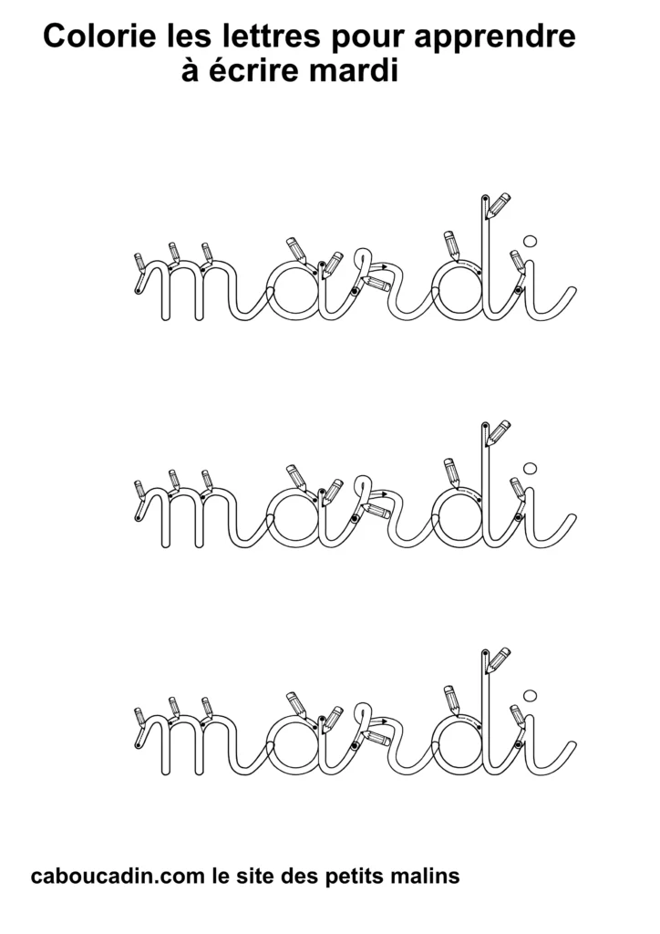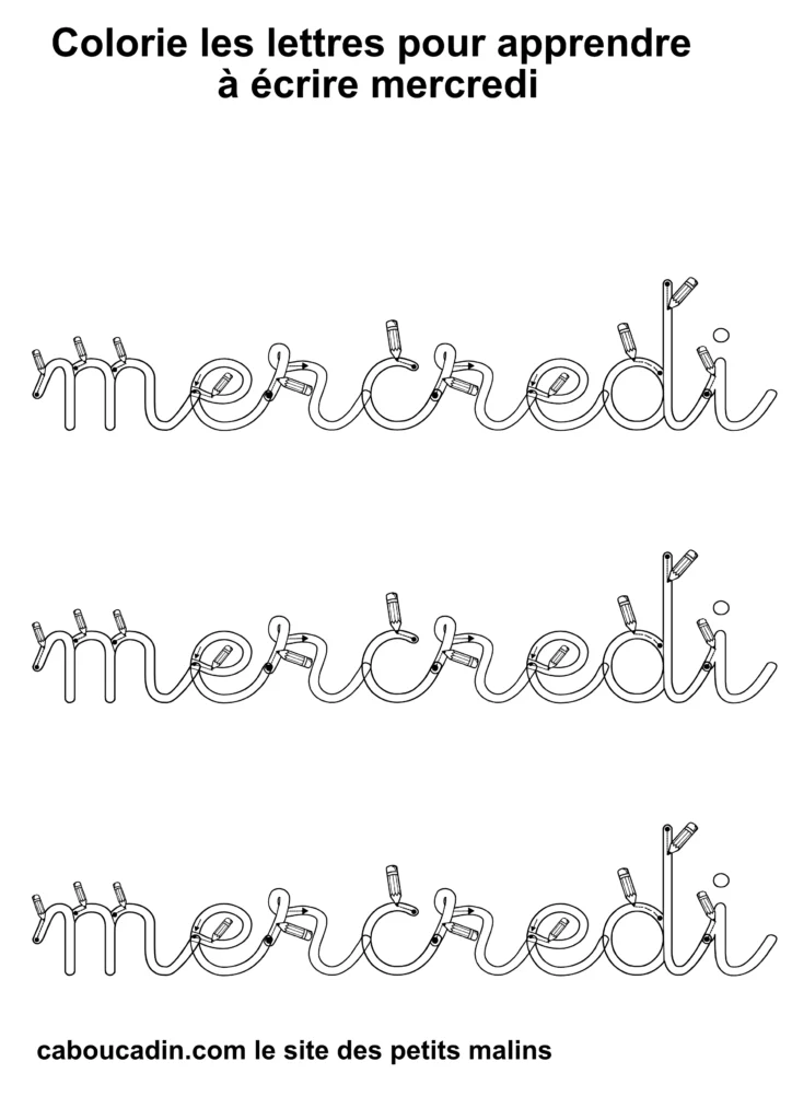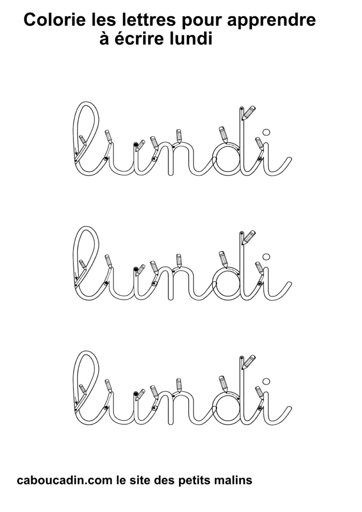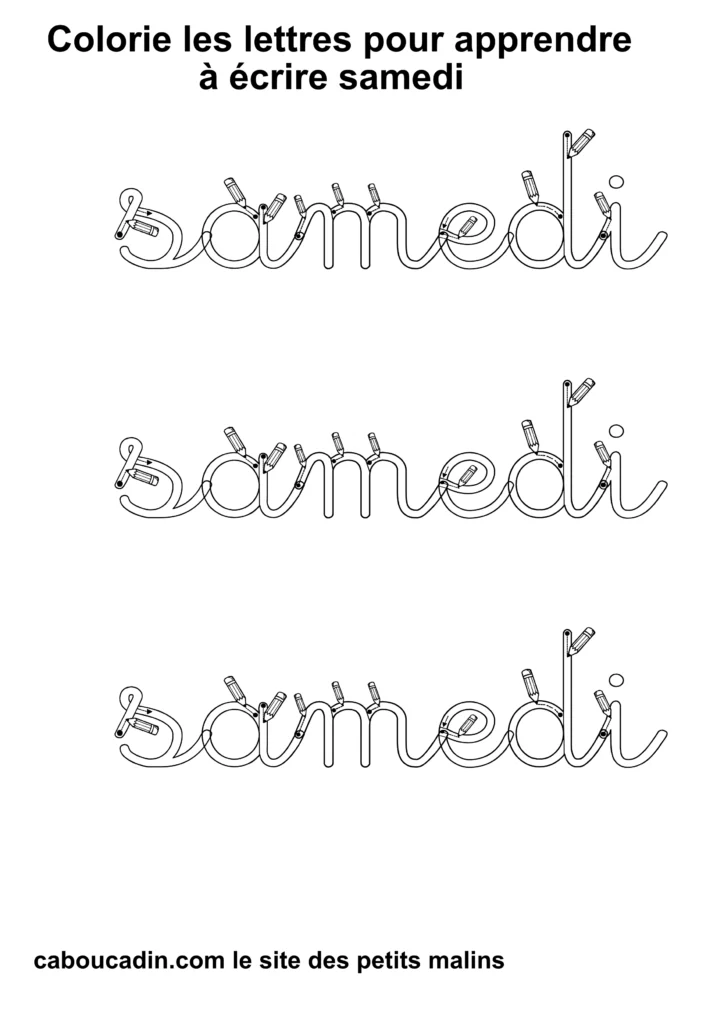 Fiches maternelles : jours de la semaine et coloriage. Fiches maternelles pour apprendre à écrire les jours de la semaine en coloriant